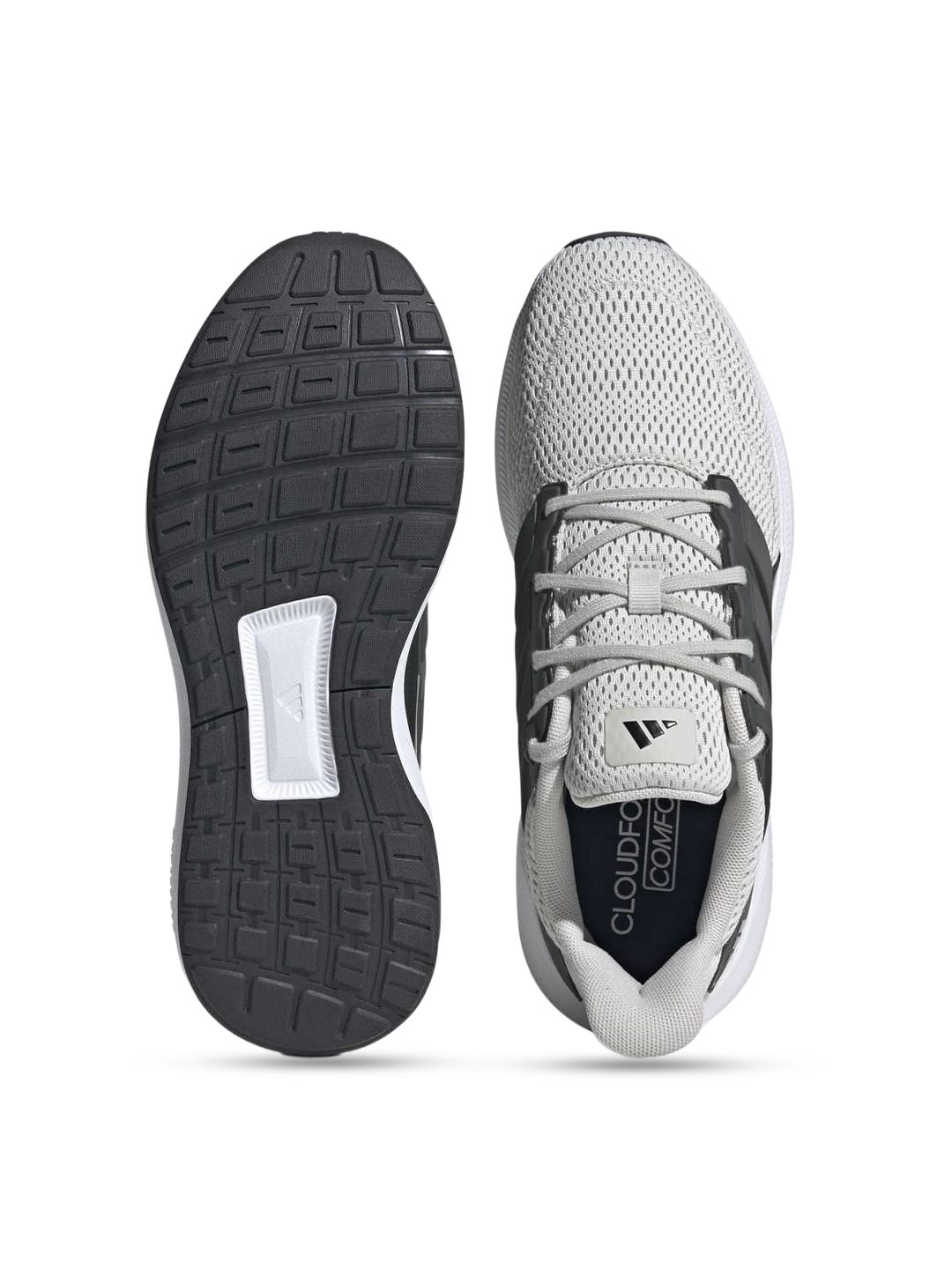 Product Design Details:A pair of grey & black round toe regular sports shoes with regular styling has a lace-up closure