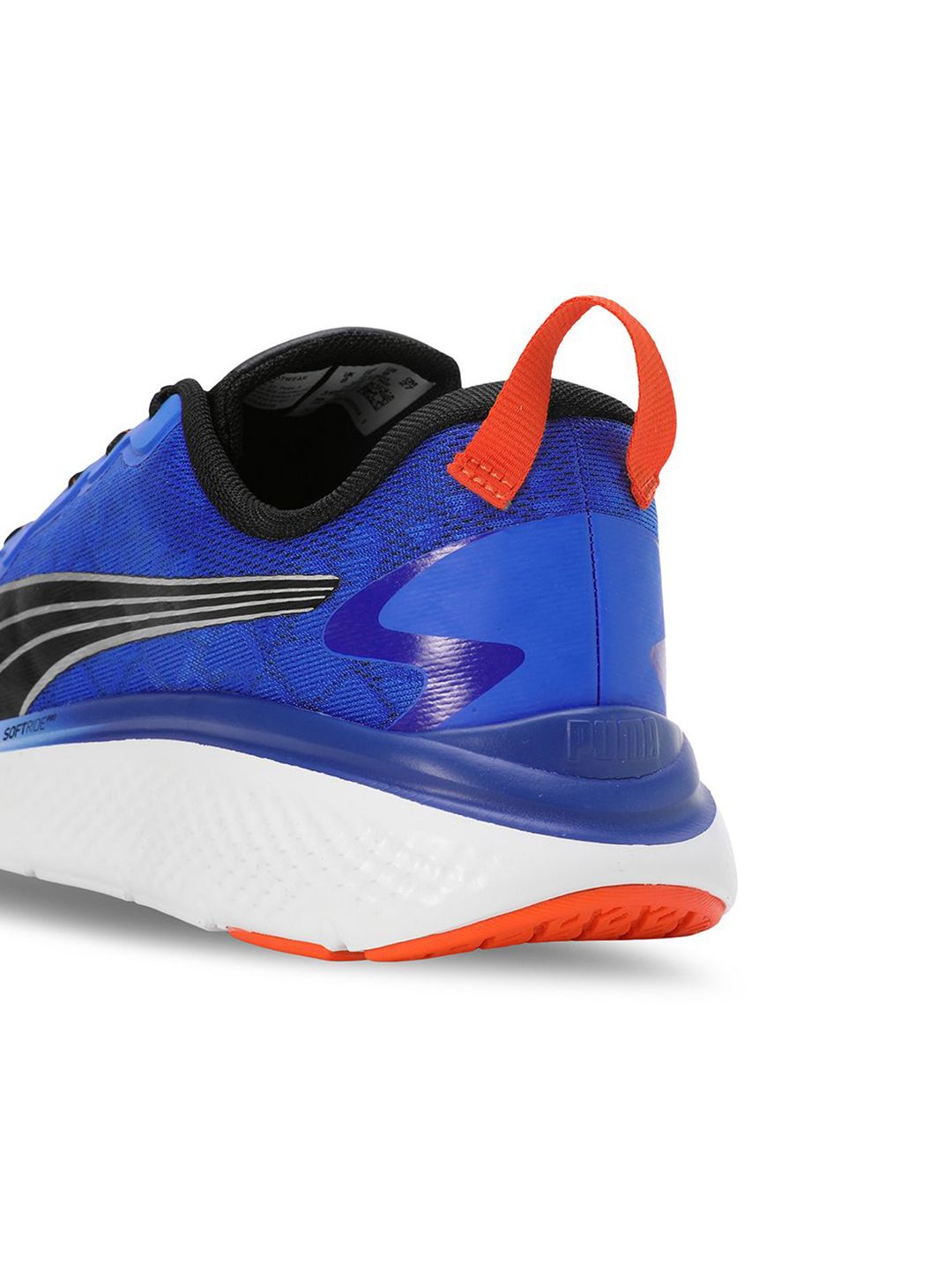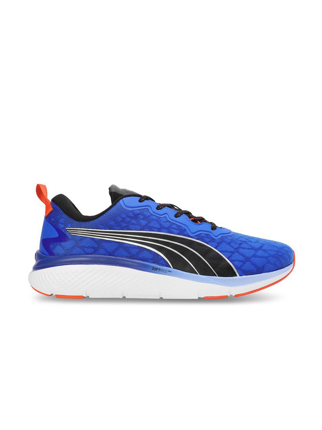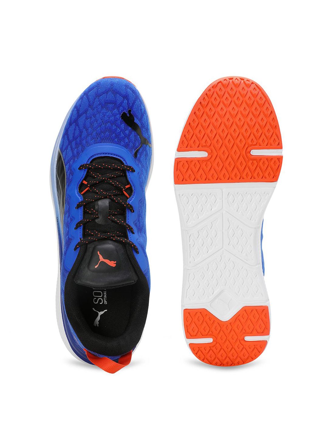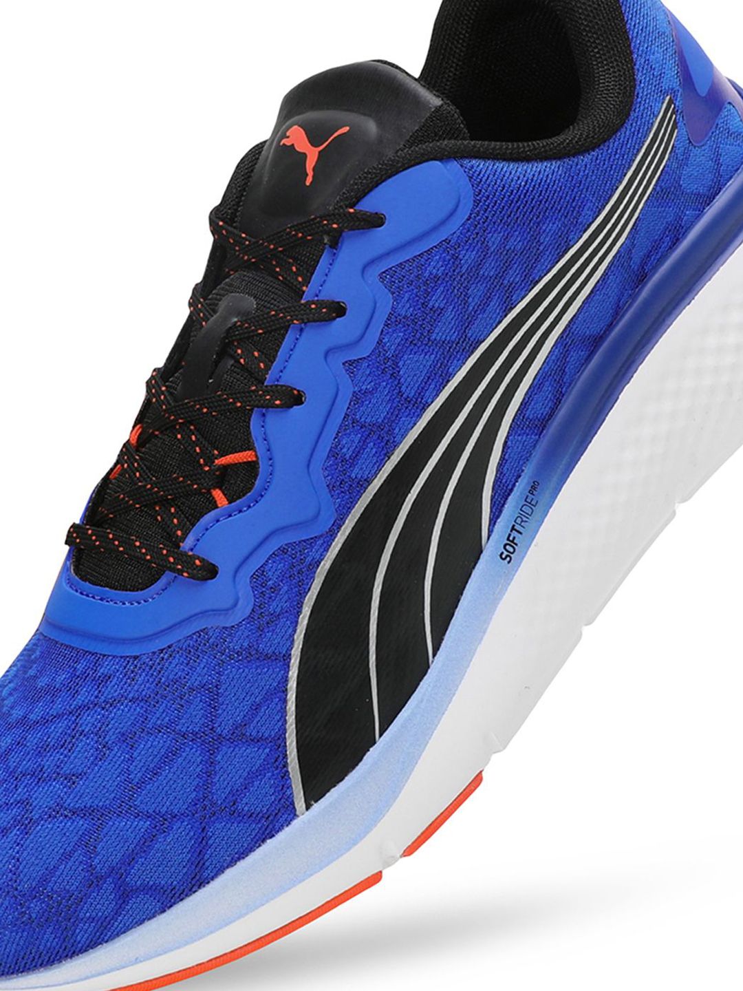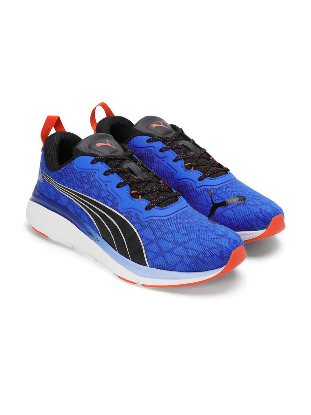 Product Design Details:A pair of blue textured round toe regular sports shoes with regular styling has a lace-up closure