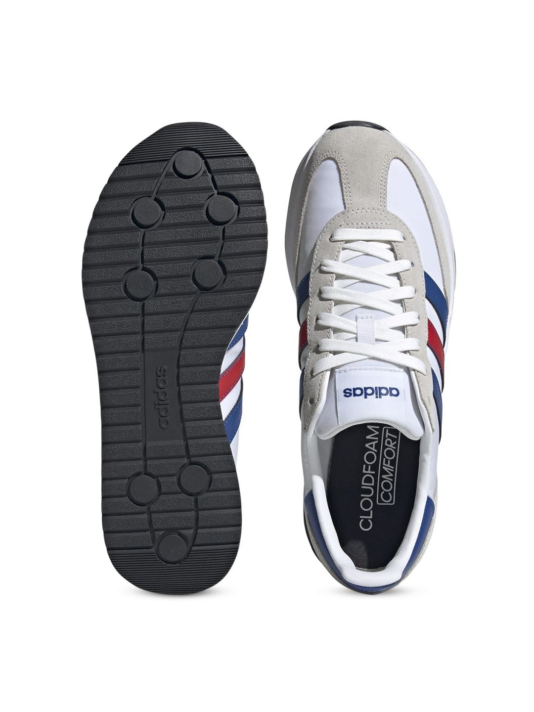 Product Design Details:A pair of white textured round toe regular sports shoes with regular styling has a lace up closure