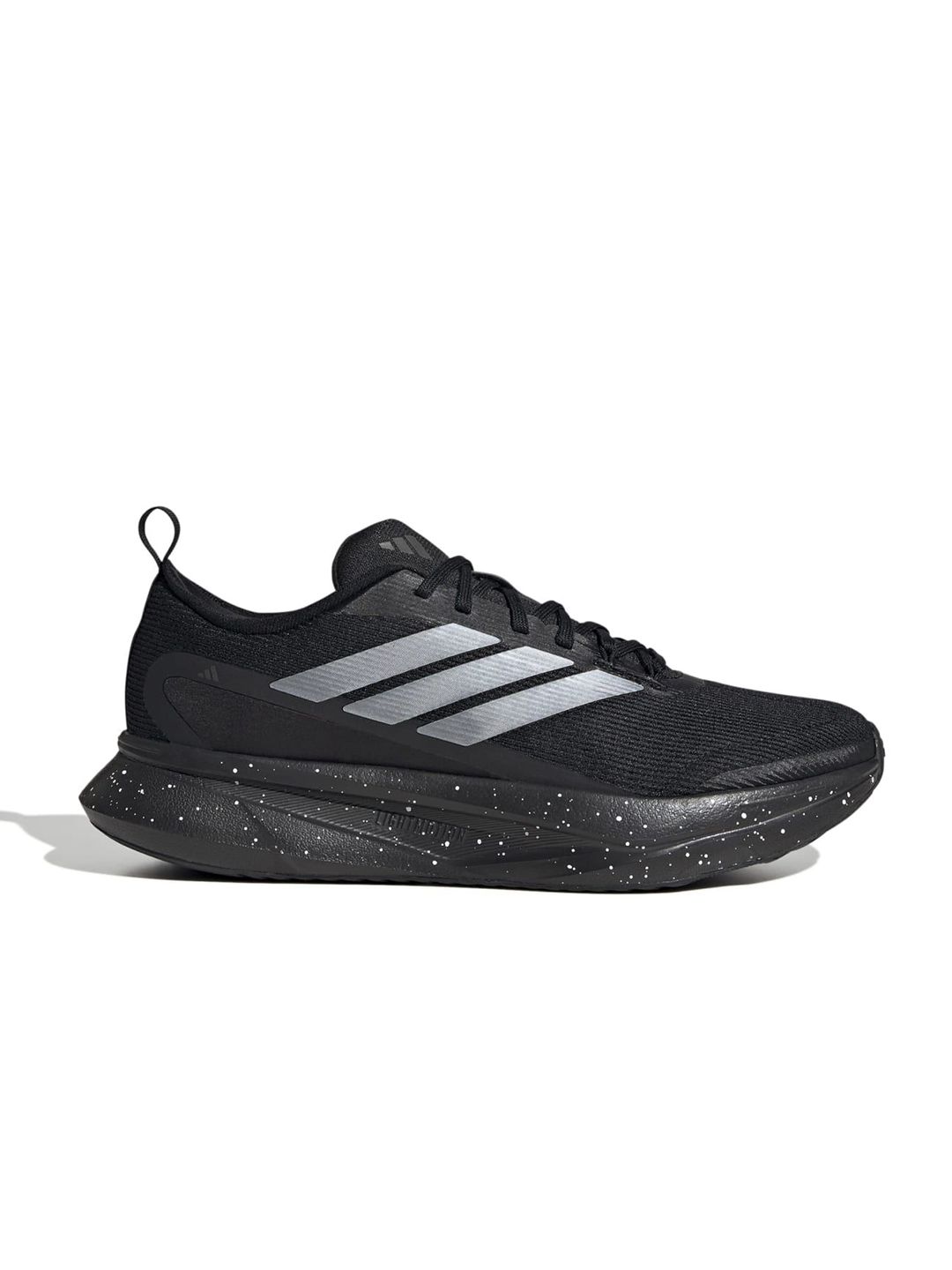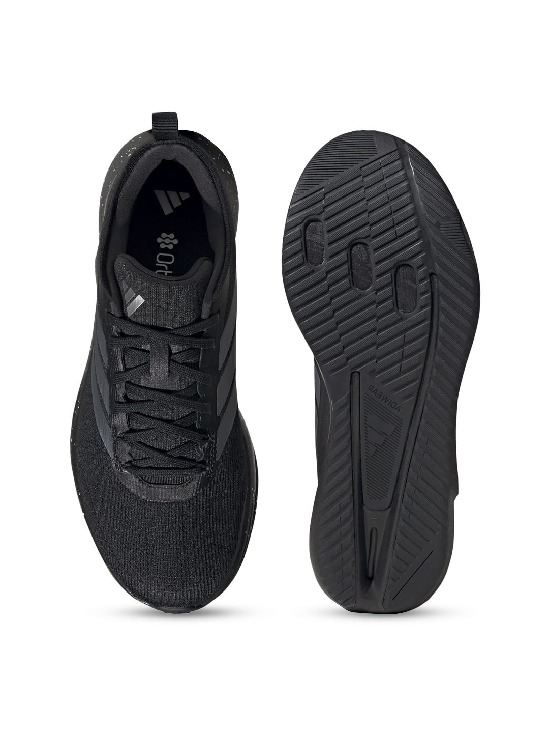 Product Design Details:A pair of black textured round toe regular sports shoes with regular styling has a lace-up closure