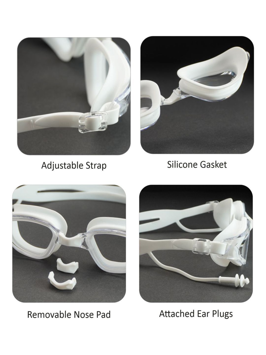 Set Content: 1 Anti Fog UV Protection Swimming gogglesColor: WhitePattern: SolidStrap Material: SiliconeLens material: GlassFeature:Anti-FogleakproofUV Protection