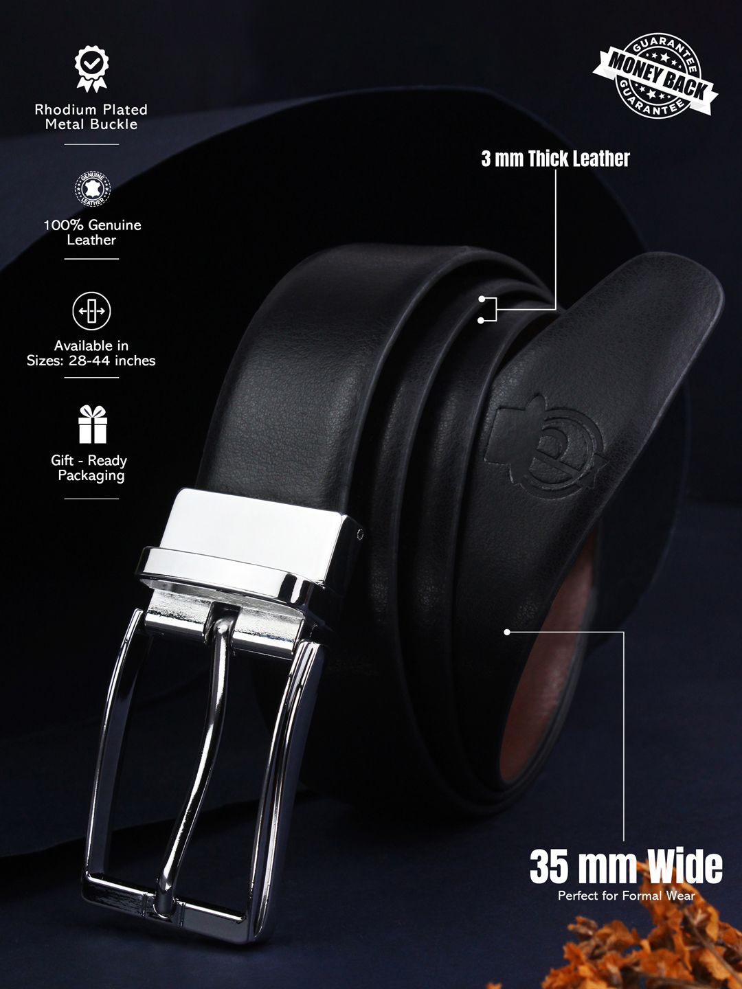 MATERIAL & SIZE: Geniune Leather|Belt Length - 116.84 cm , Width - 3.5 cm.Suitable for Waist Size: 40 - 44 inches. The buckle is made from strong and durable metal which ensures a secure fit, alongwith a hassle-free fastening and unfastening.