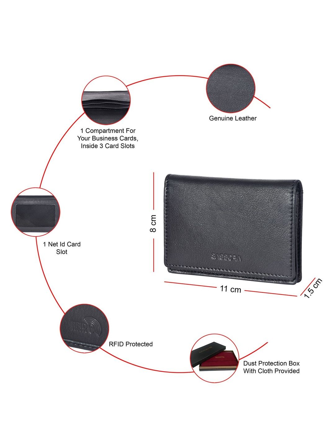 SLIM FRONT POCKET DESIGN: Engineered to be ultra-thin, this minimalist wallet fits perfectly in your front pocket, back pocket, or blazer without creating a bulge, ADVANCED RFID BLOCKING: Features a certified RFID-blocking lining to protect your credit cards, debit cards, and ID from unauthorized scans and digital theft, EFFICIENT & ACCESSIBLE: Intelligently designed with 3 card slots, 1 transparent ID window, and a central compartment for business cards or folded cash, ensuring quick access, UNISEX & ELEGANT: Crafted from 100% genuine leather with a secure flap closure, its timeless design is suitable for both men and women for professional or casual use, GIFT-READY PRESENTATION: Arrives in a premium dust protection box with a polishing cloth, making it an ideal and sophisticated gift, backed by a 6-month warranty.