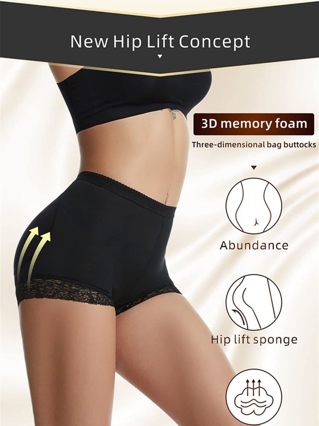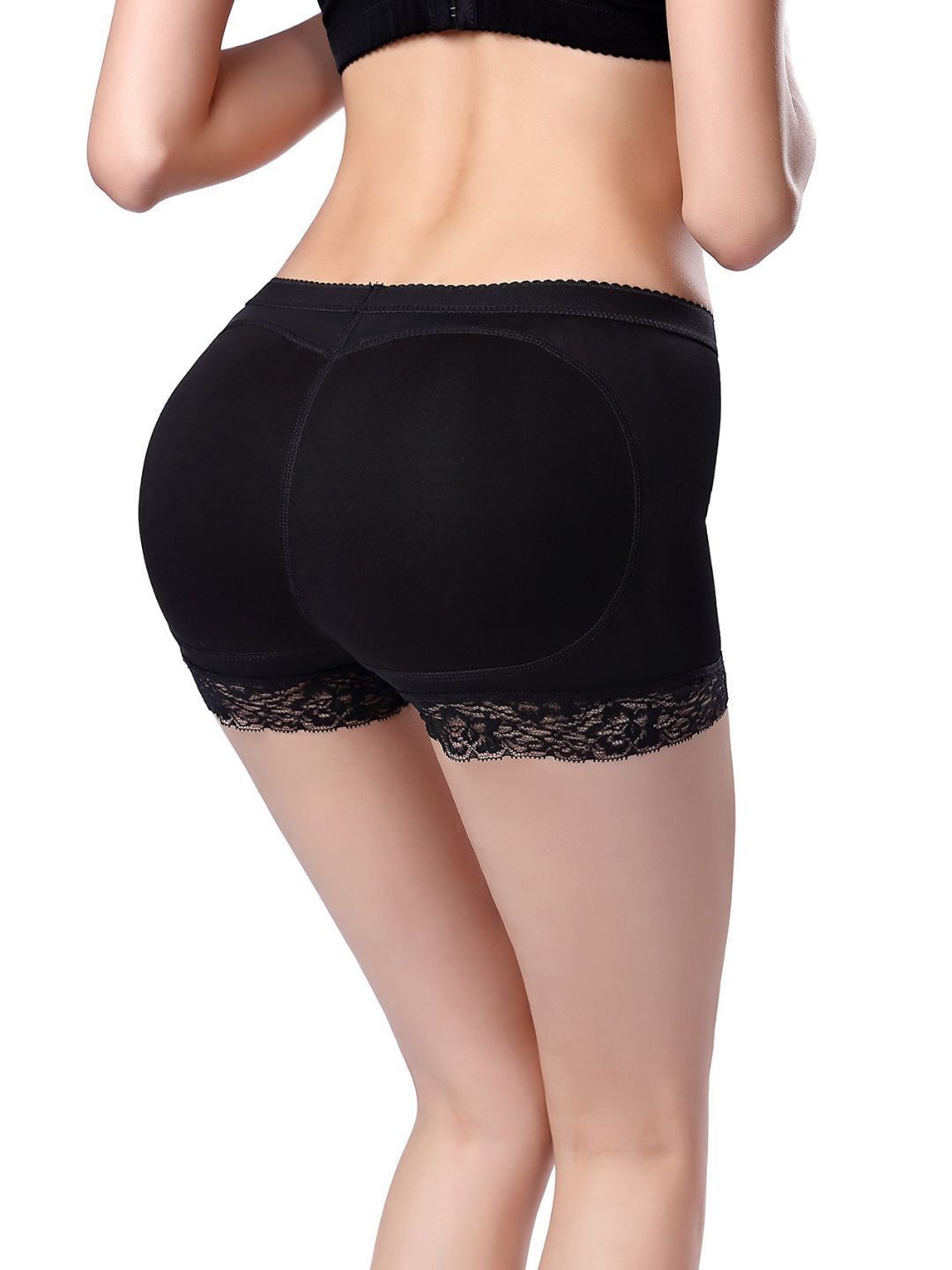 Black solid high rise breathable padded tummy control boyshorts brief shapewear has an elasticated waistband, and a double-layered gusset