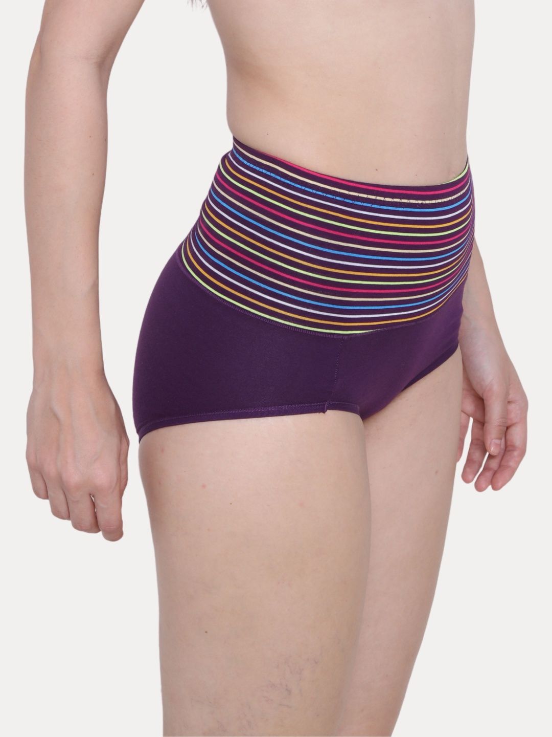 VAN Number: GL-1003-BLACK-PURPLE-MBlack striped tummy tucker shaper has an elasticated waistband, and a double-layered gussetPurple striped tummy tucker shaper has an elasticated waistband, and a double-layered gusset