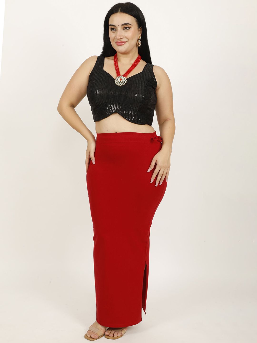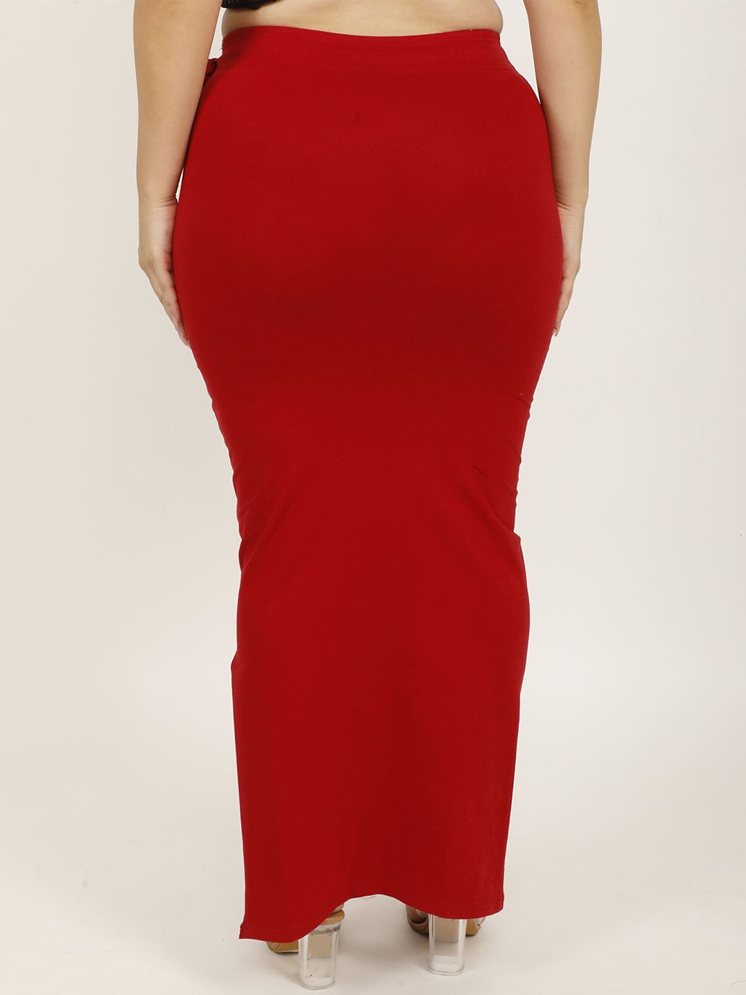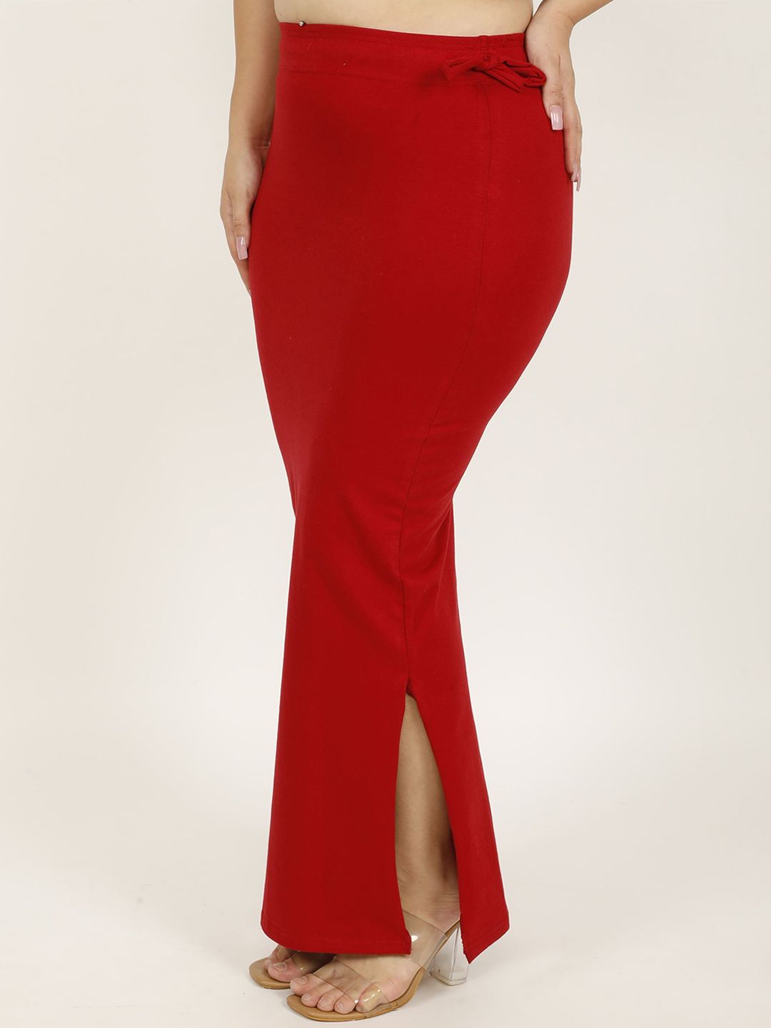 Maroon solid Stretchable saree shapewear, has an elasticated waistband with drawstring closure and flared hem