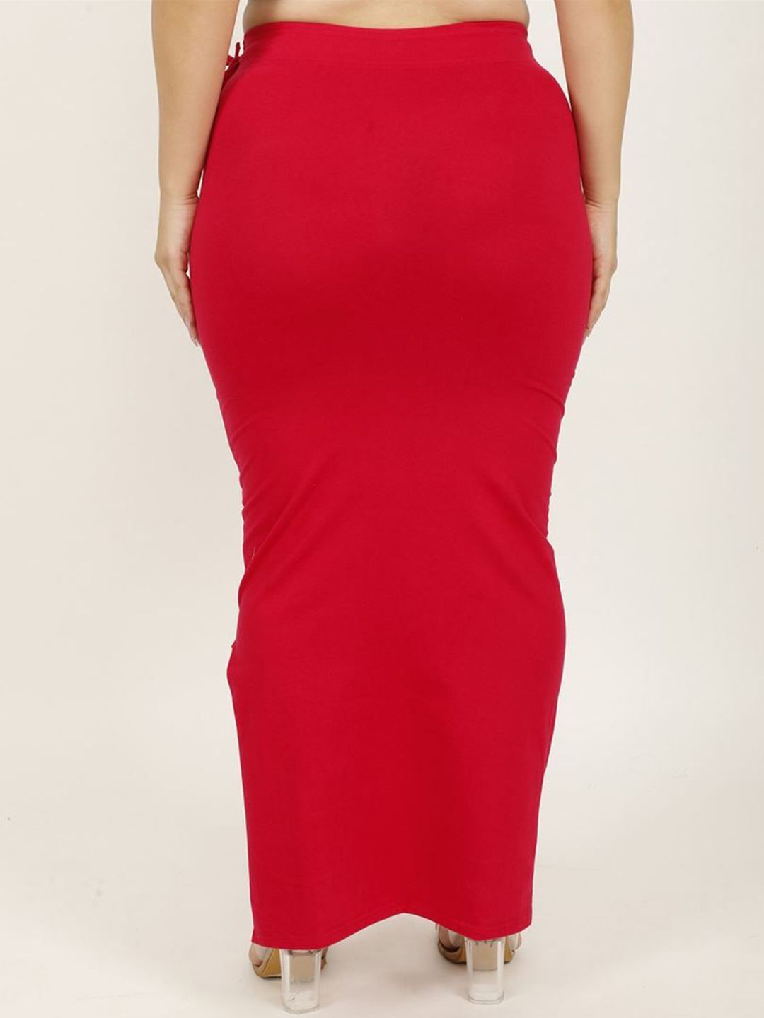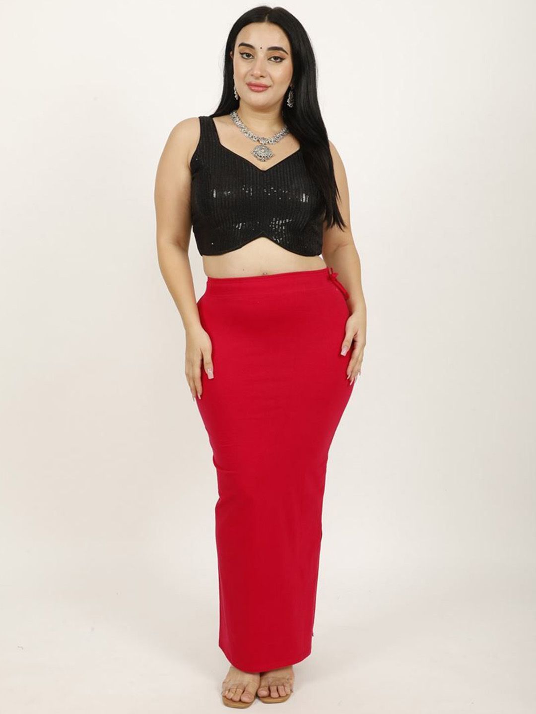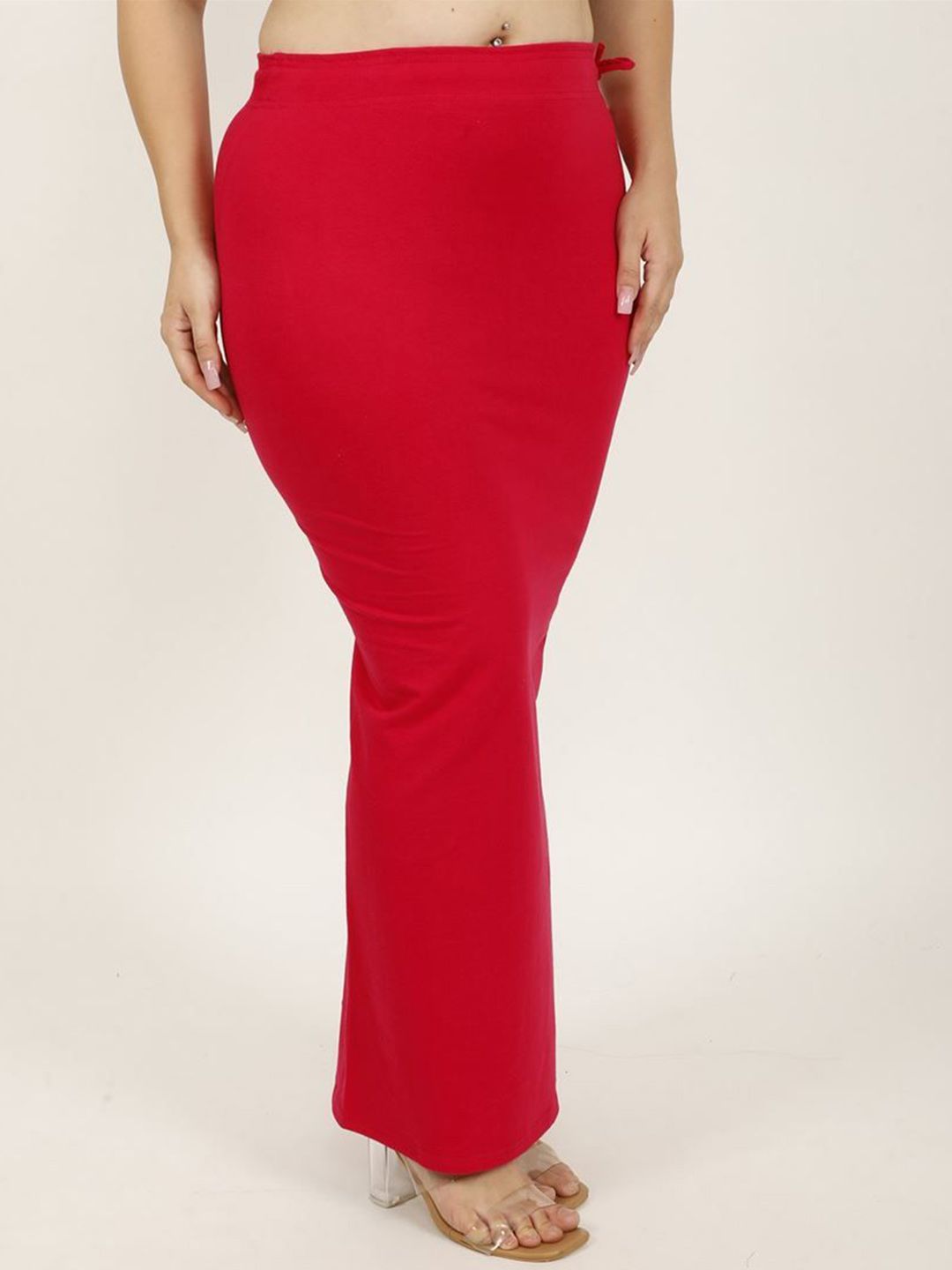 Red solid Stretchable saree shapewear, has an elasticated waistband with drawstring closure and flared hem