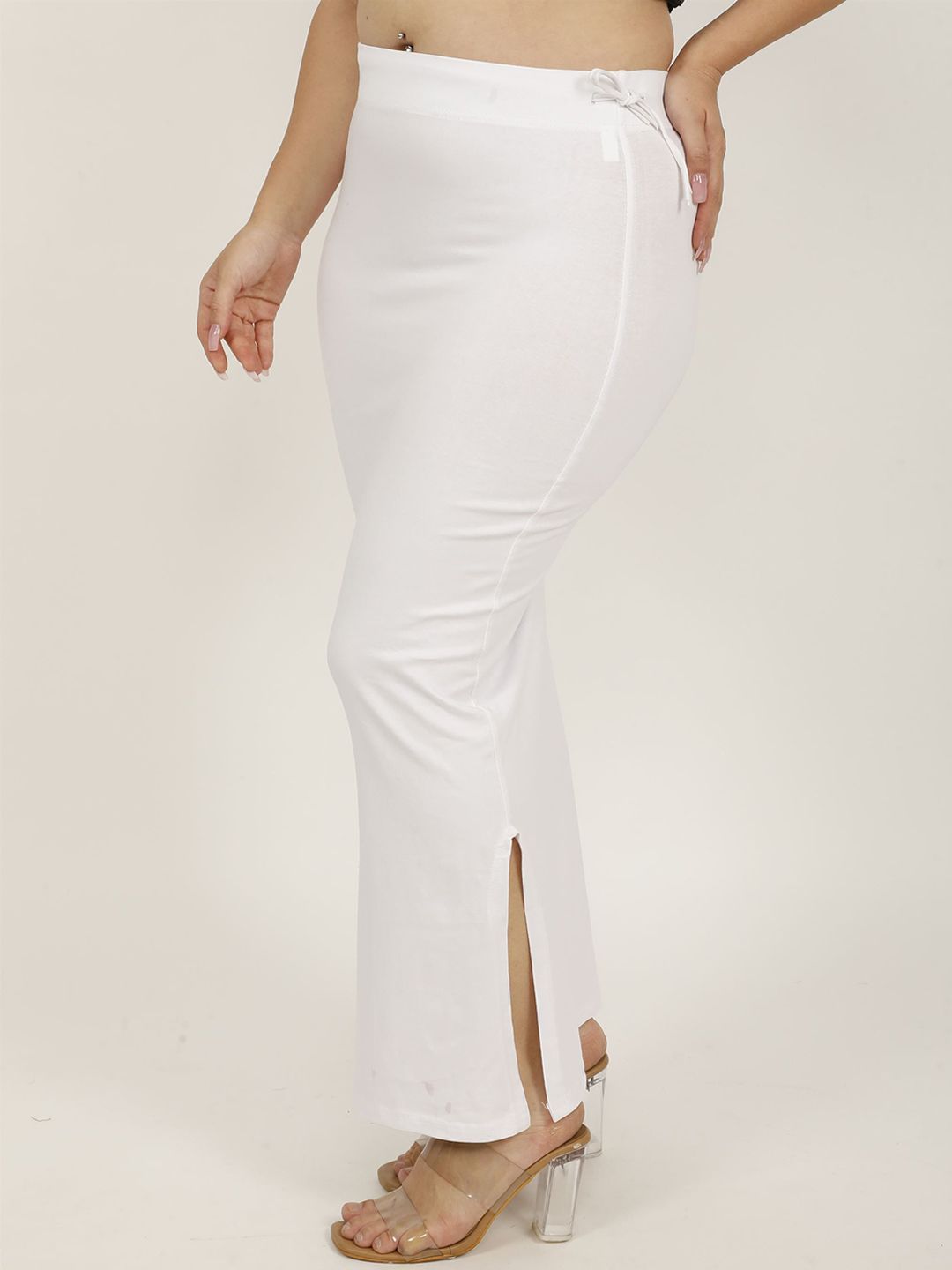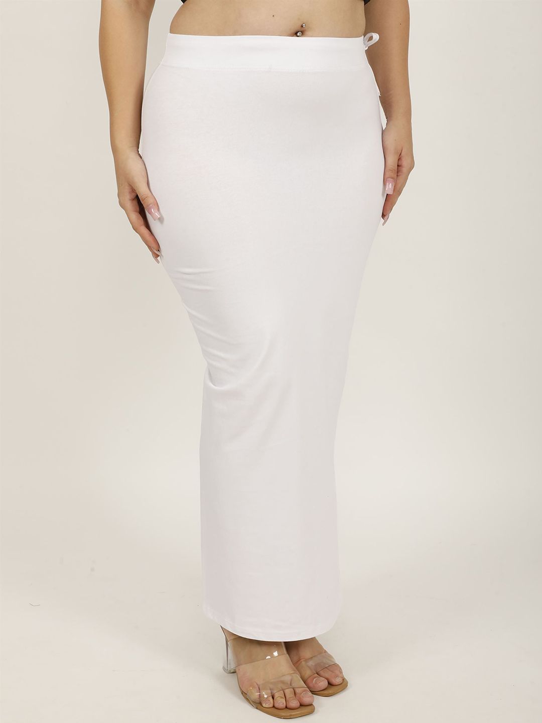 White solid Stretchable saree shapewear, has an elasticated waistband with drawstring closure and flared hem
