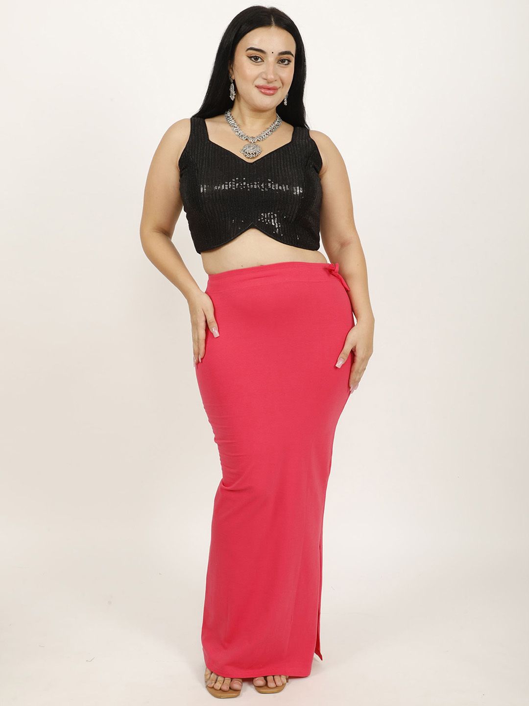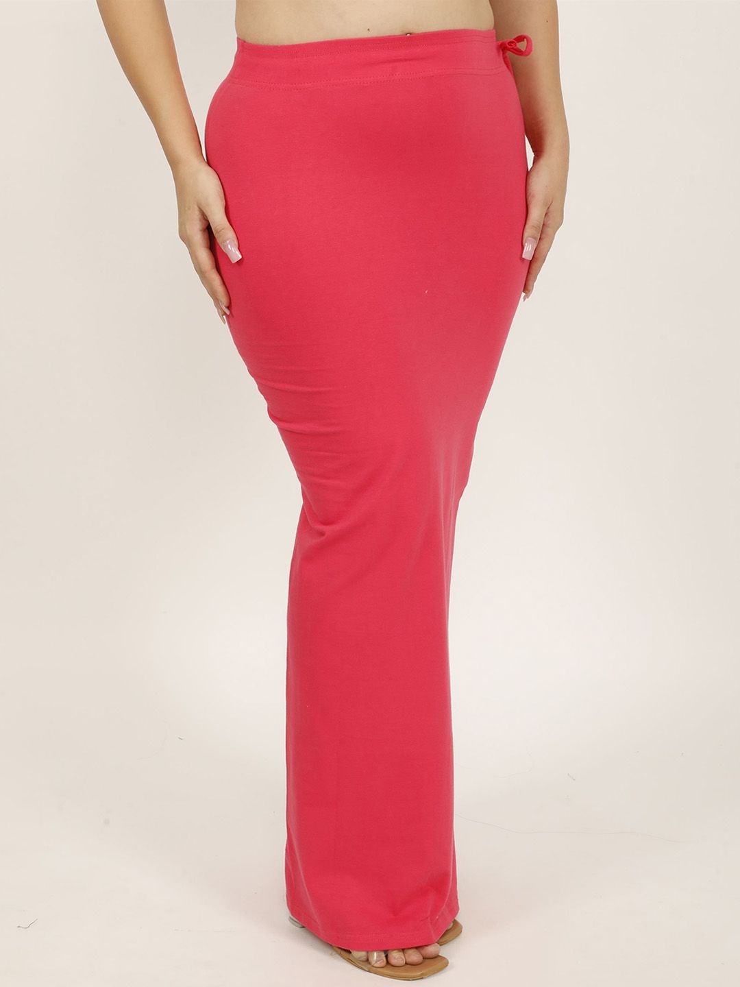 Red solid Stretchable saree shapewear, has an elasticated waistband with drawstring closure and flared hem