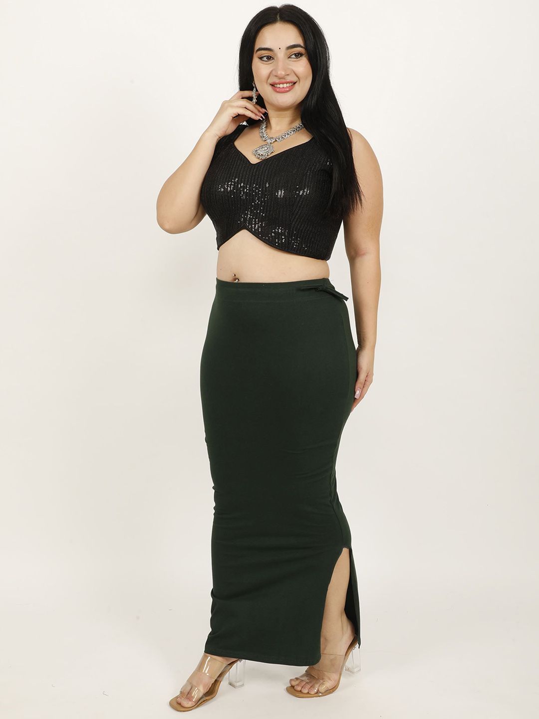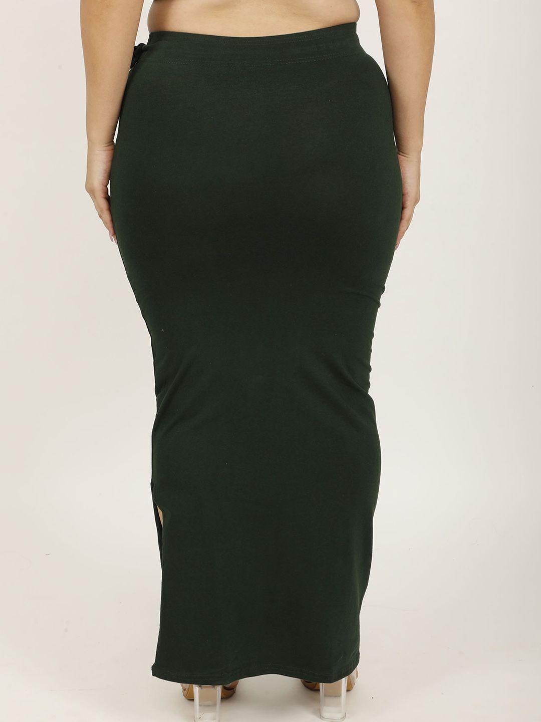 Green solid Stretchable saree shapewear, has an elasticated waistband with drawstring closure and flared hem