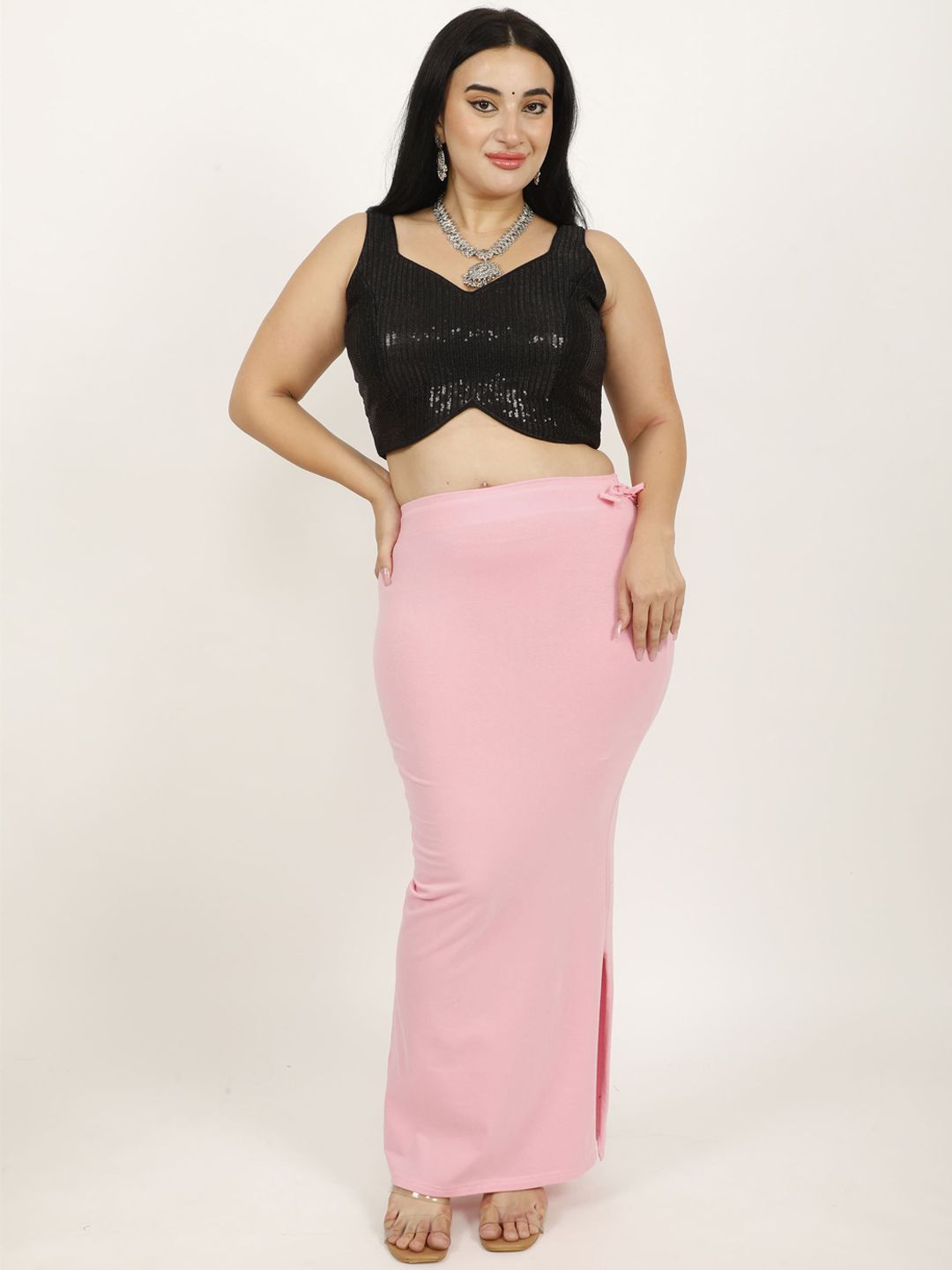Pink solid seamless saree shapewear, has an elasticated waistband with a drawstring closure and side slitFeatures:Breathable and hypoallergenic