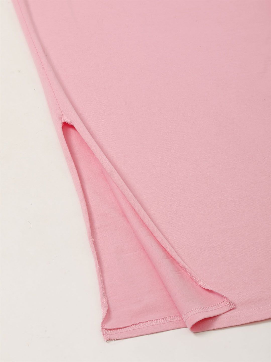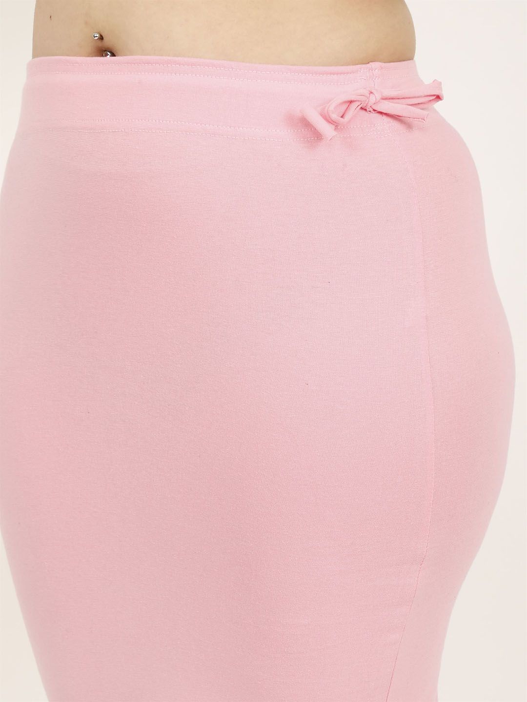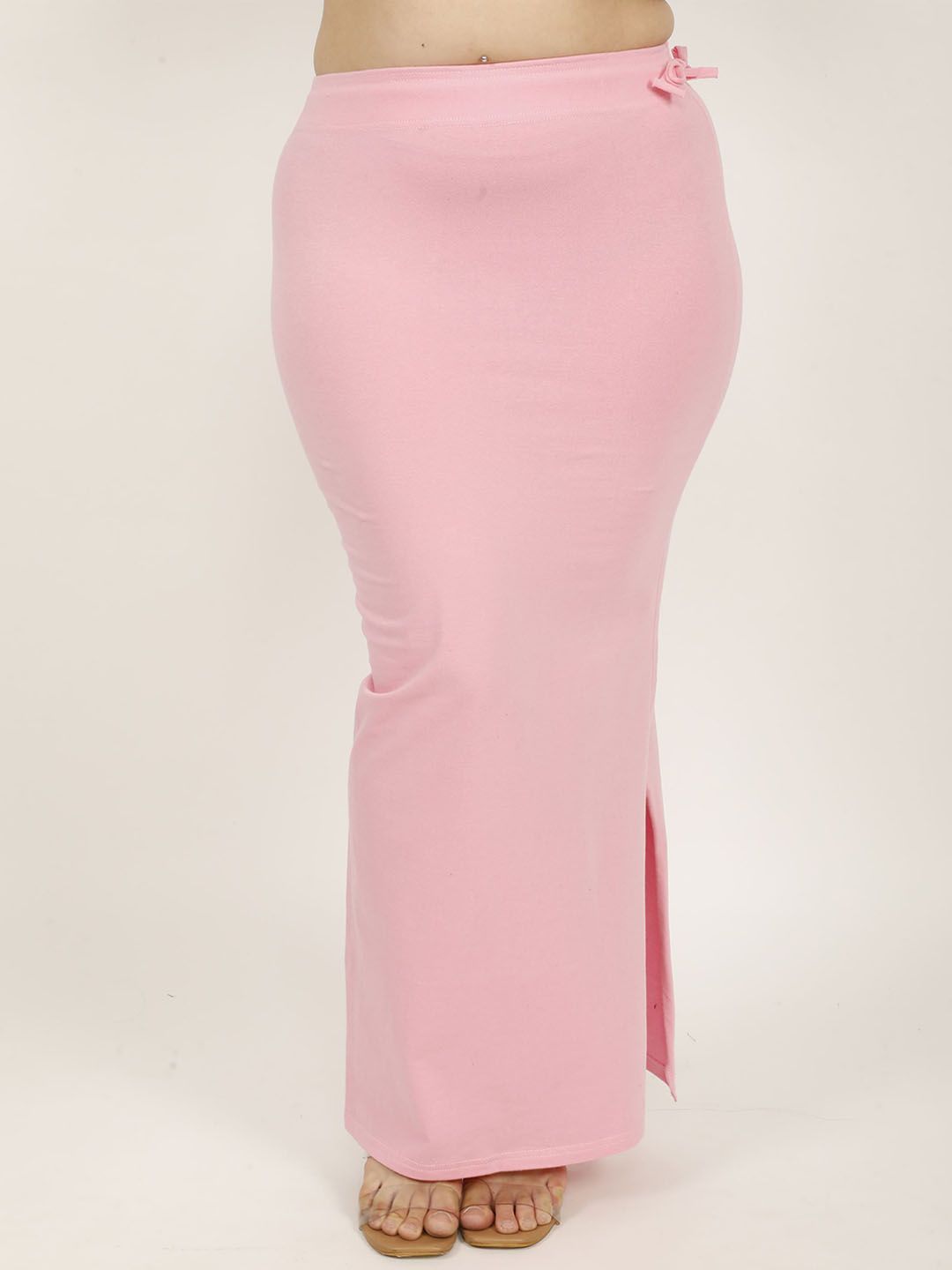 Pink solid saree shapewear, has an elasticated waistband with drawstring closure, seamless and a side slit