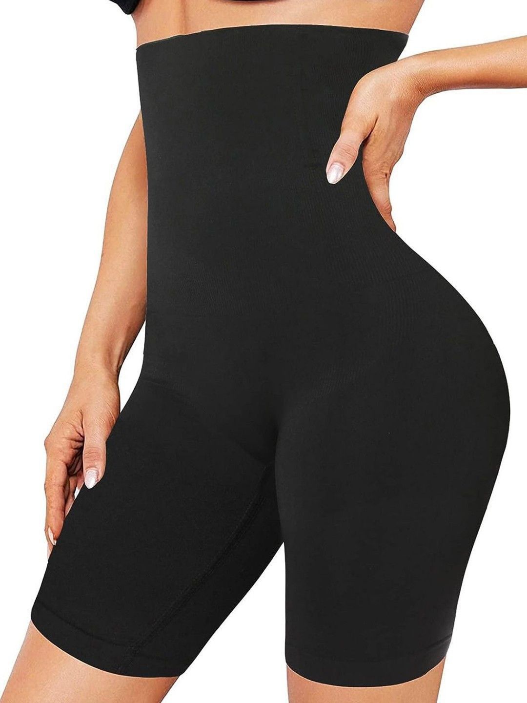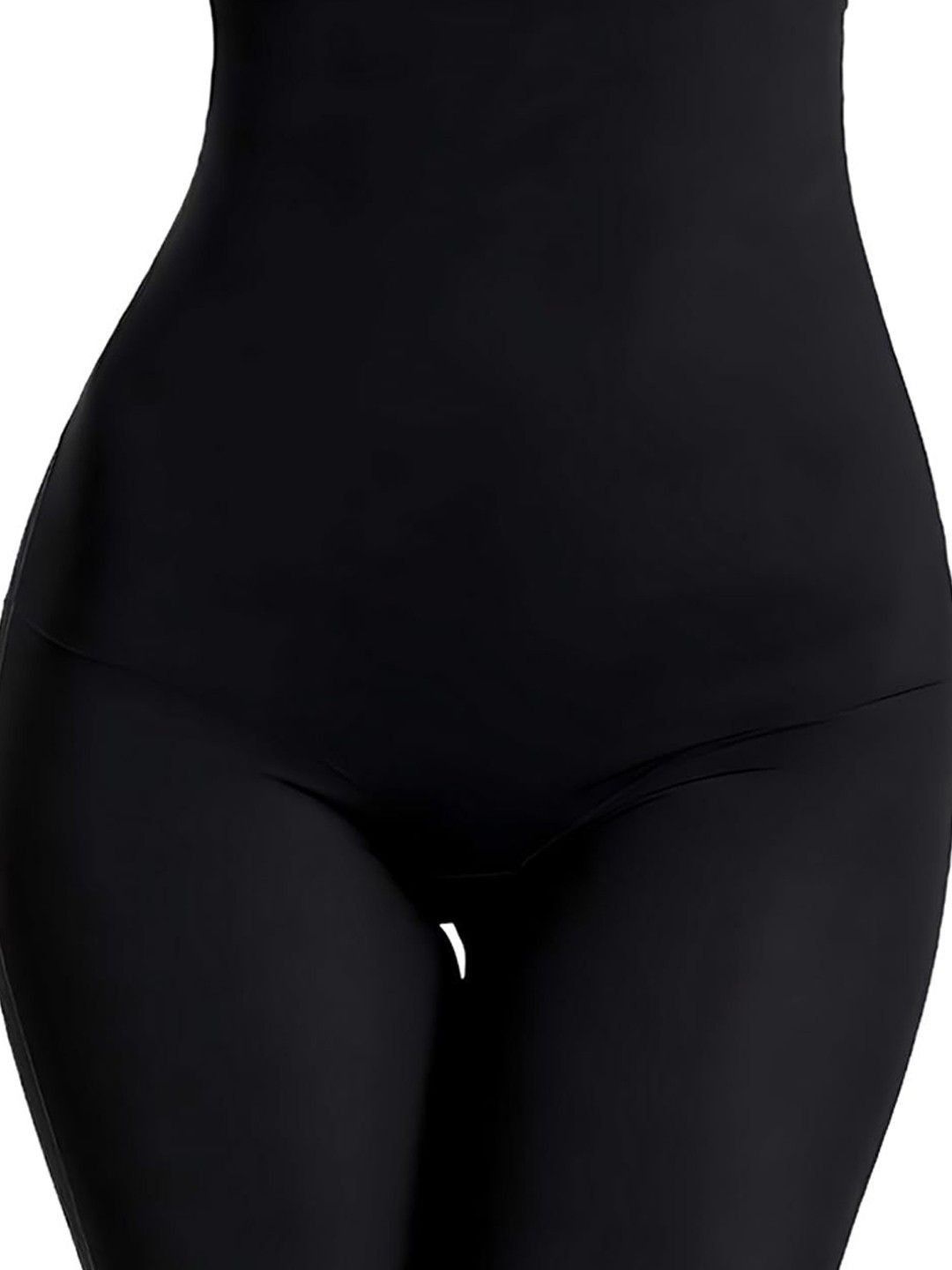 Black solid tummy tucker shaper has an elasticated waistband, and a double-layered gusset