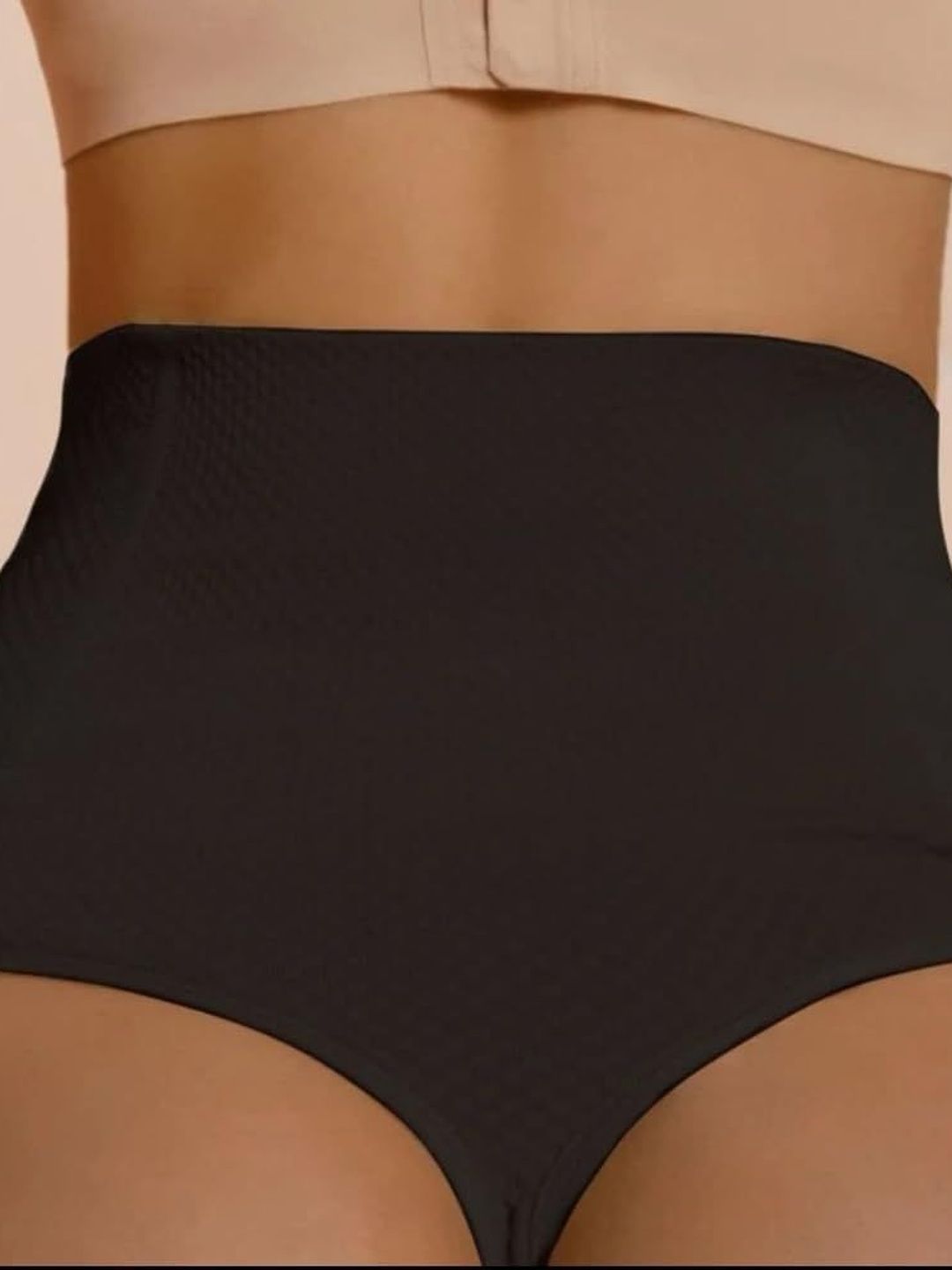 Black solid tummy control & butt lifting brief shaper has an elasticated waistband, and a double-layered gusset