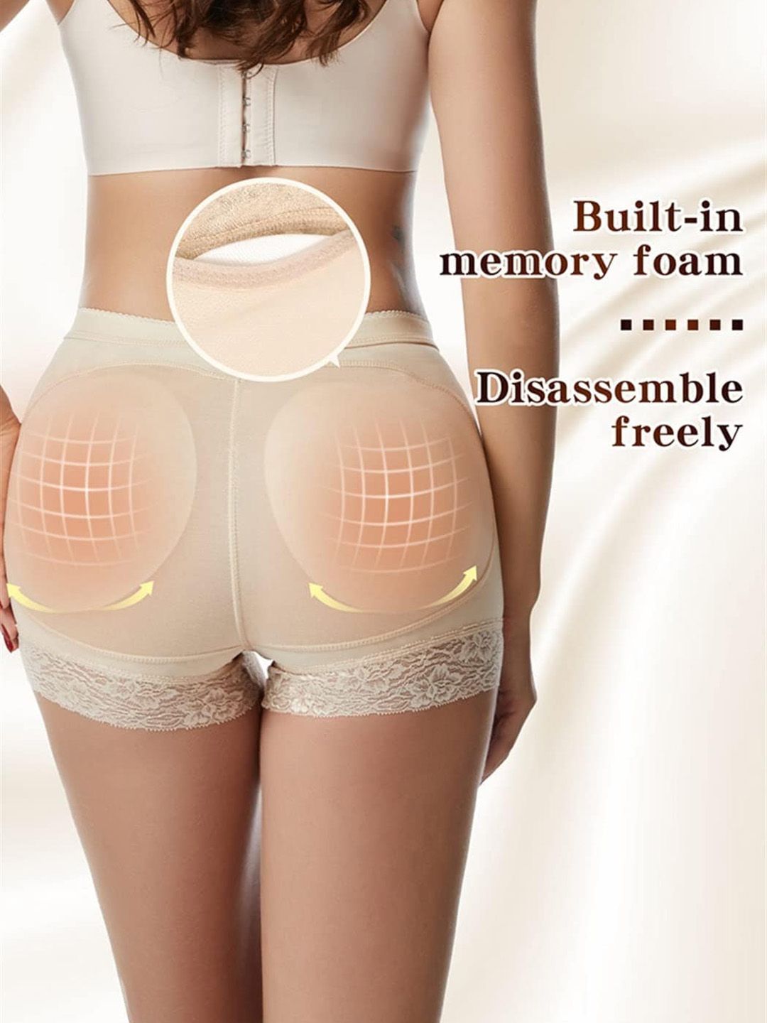 Cream coloured solid butt lifter and tummy control boyshorts brief shapewear has an elasticated waistband, and a double-layered gusset