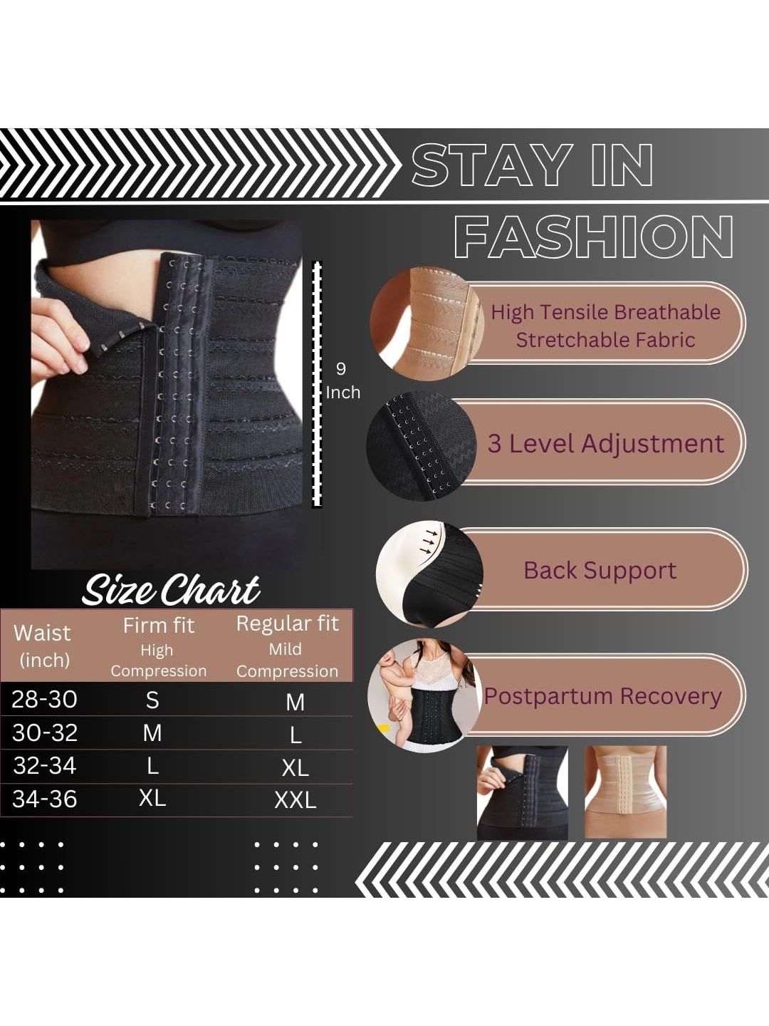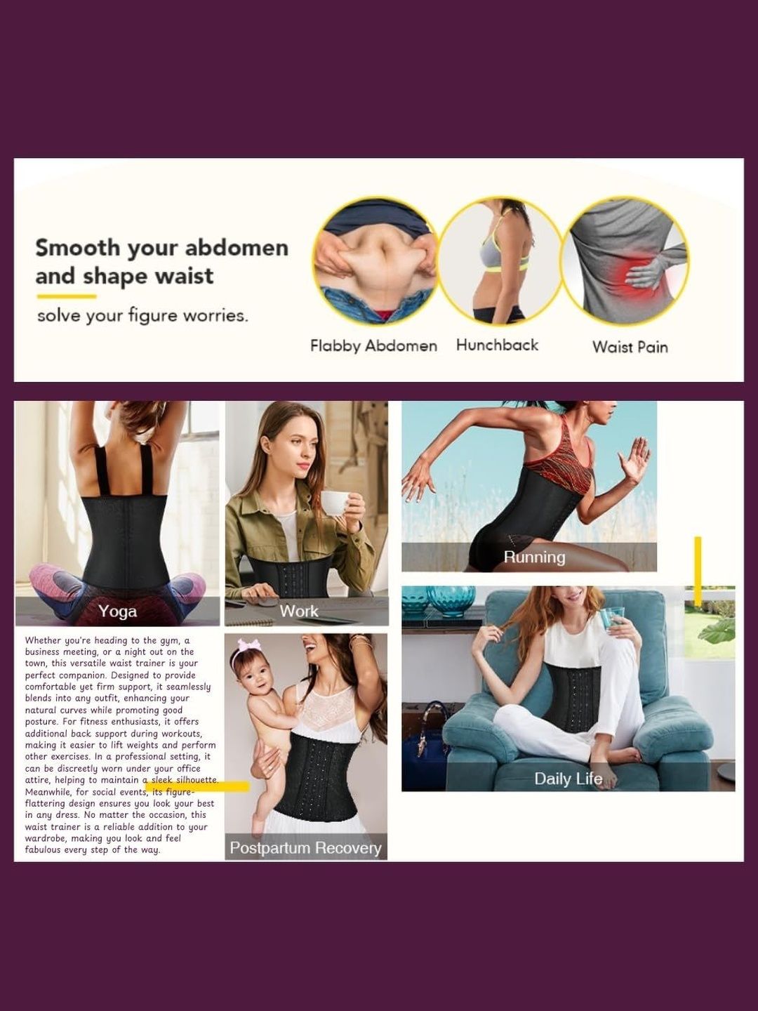 Black textured Slimming Corset Waist Trainer Cincher Body Shapewear has an elasticated waistbandFeatures:SoftBreathable