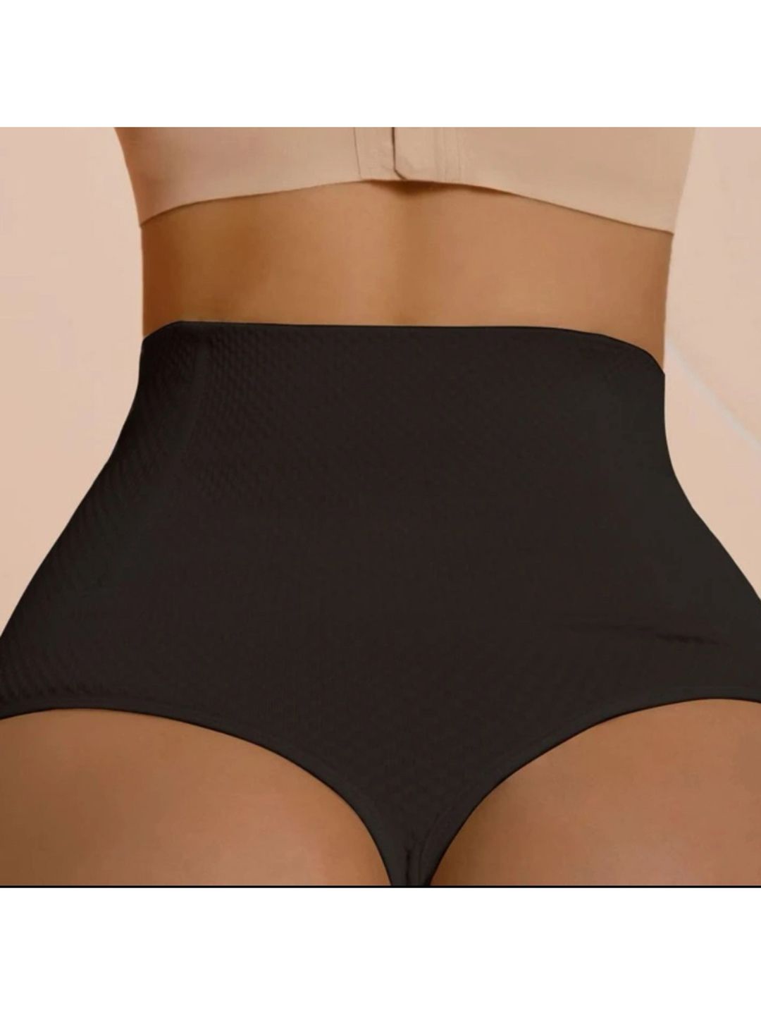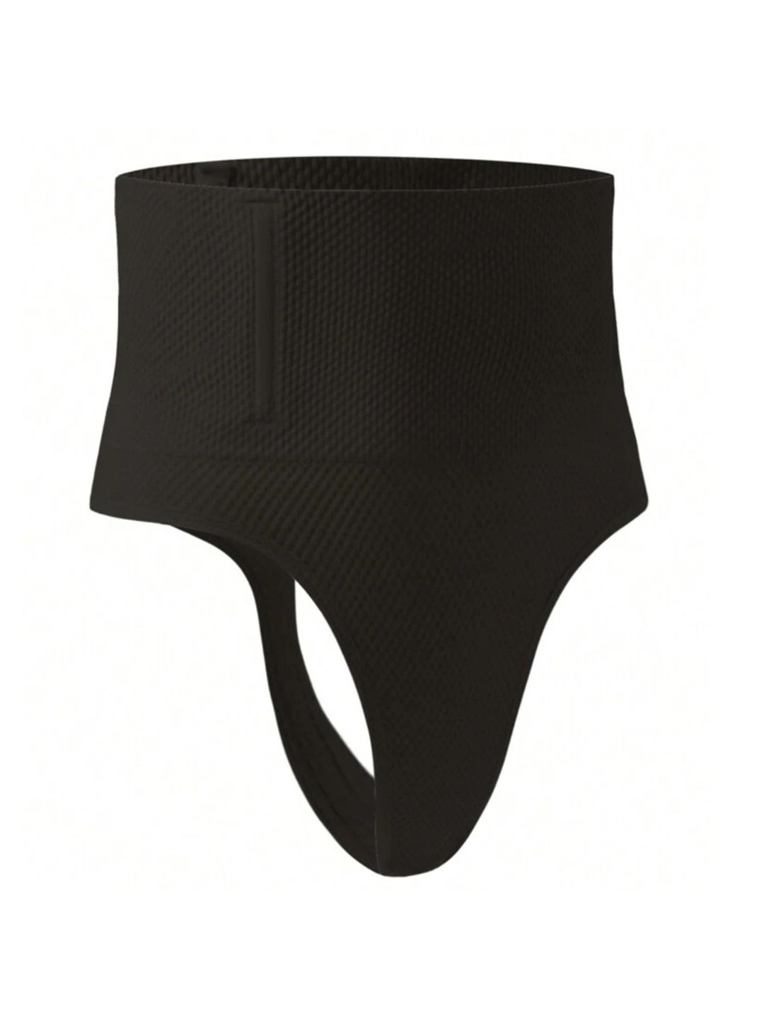 Black solid high-waist tummy tucker shapewear, has an elasticated waistband with slip-on closure