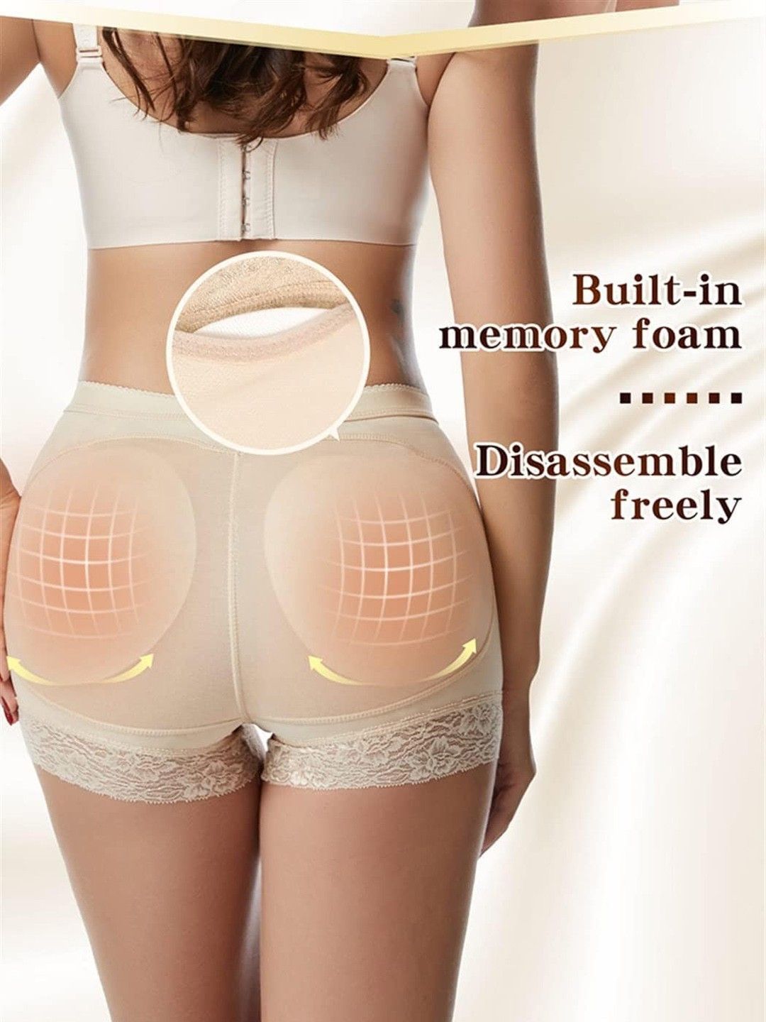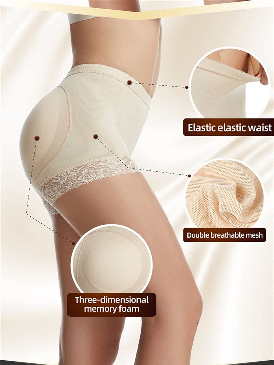 ShapewearBeige solid low-waist padded seamless waist shapewear has an elasticated waistband, and a double-layered gusset slip-on closure