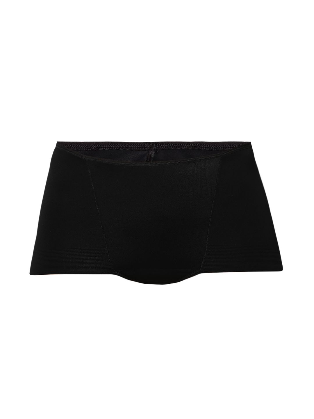 Black solid seamless high-rise tummy and thigh shaper, has an elasticated waistband and a double-layered gussetFeatures:Medium control for looking 1 Inch slimmer12 Hour shapewearExtremely lightweight and comfortableSeamless chafe-free finish, invisible under clothingElastane blended for stretch and shape retentionMid-waist thigh shaper for tummy, thighs and rear shaping