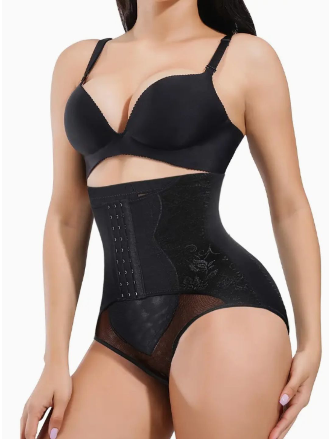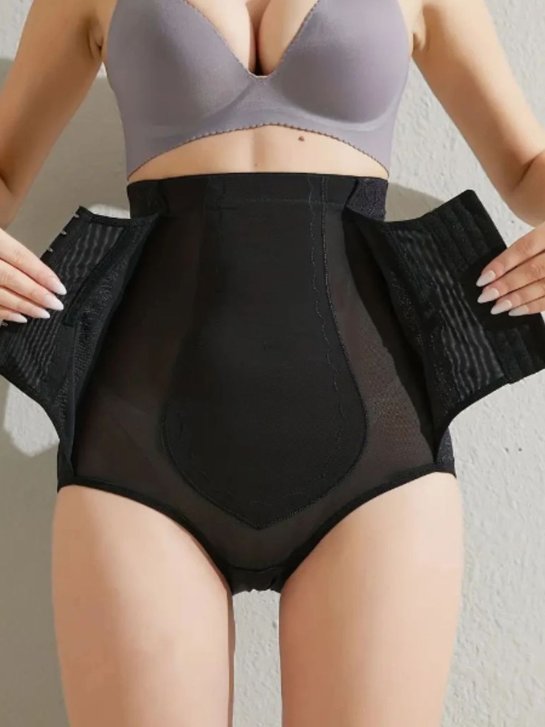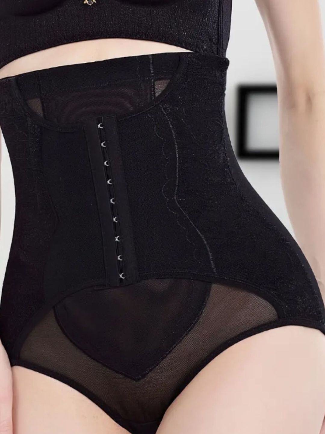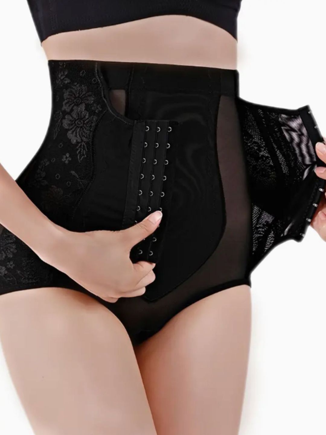 Black solid Postpartum girdles tummy shaper has an high waist elasticated waistband
