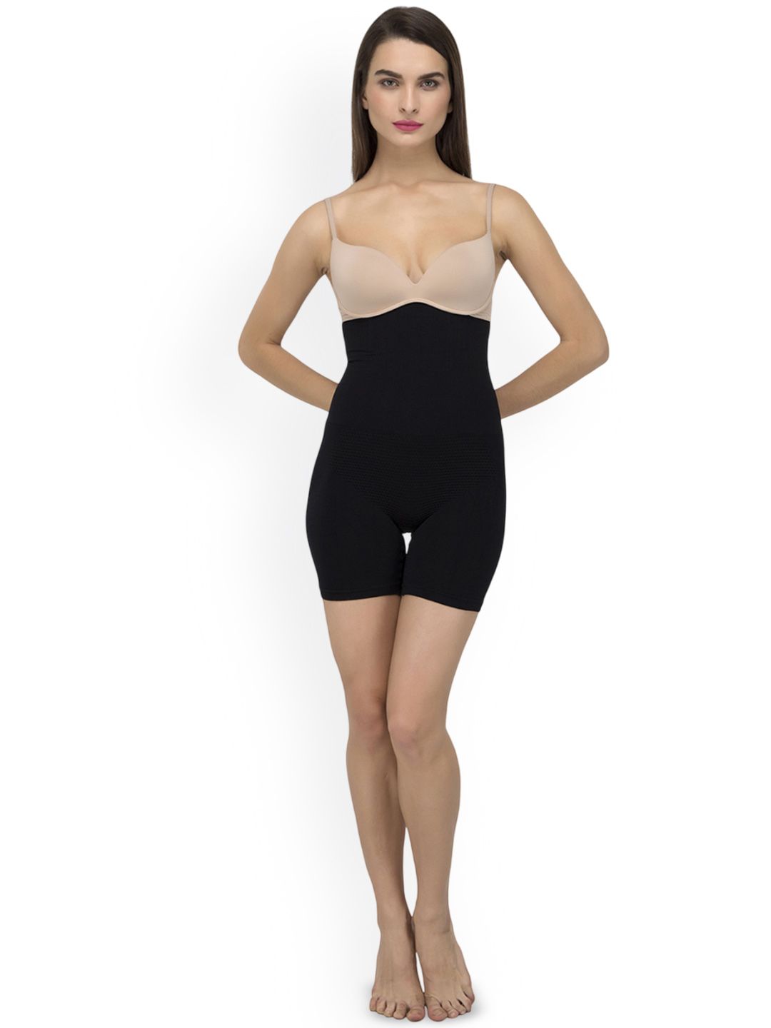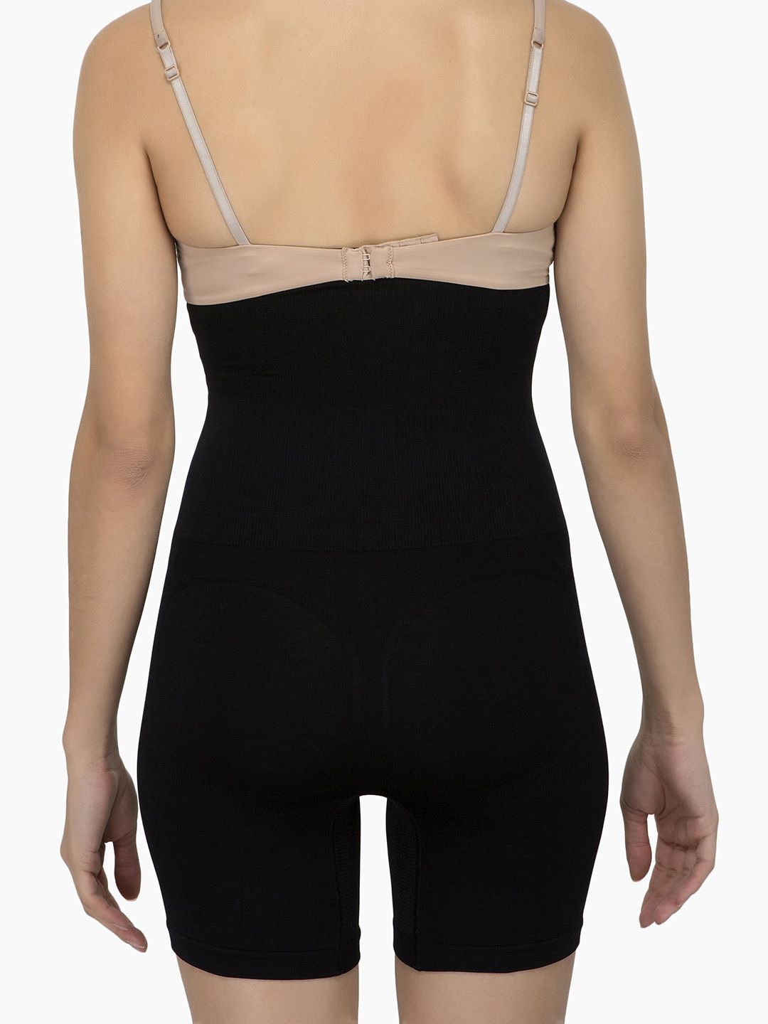 Black solid wire support tummy and thigh shapewear, has elasticated with slip-on closure