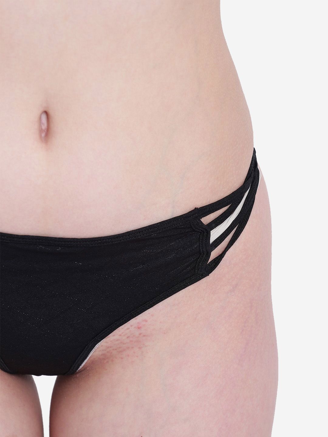 Black printed low-rise thongs with criss-cross detail, slip on closure, has an elasticated waistband, and a double-layered gusset.