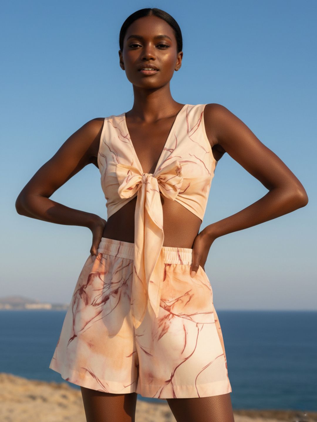 Green and white printed wrap-around sarong