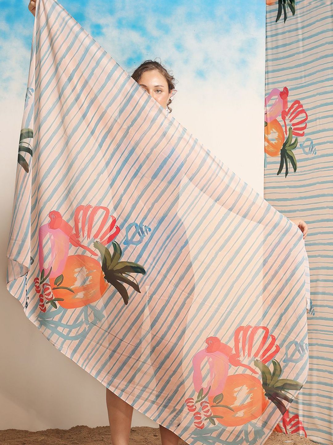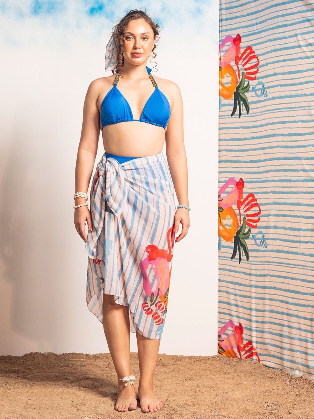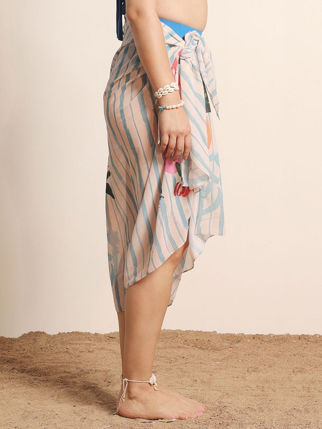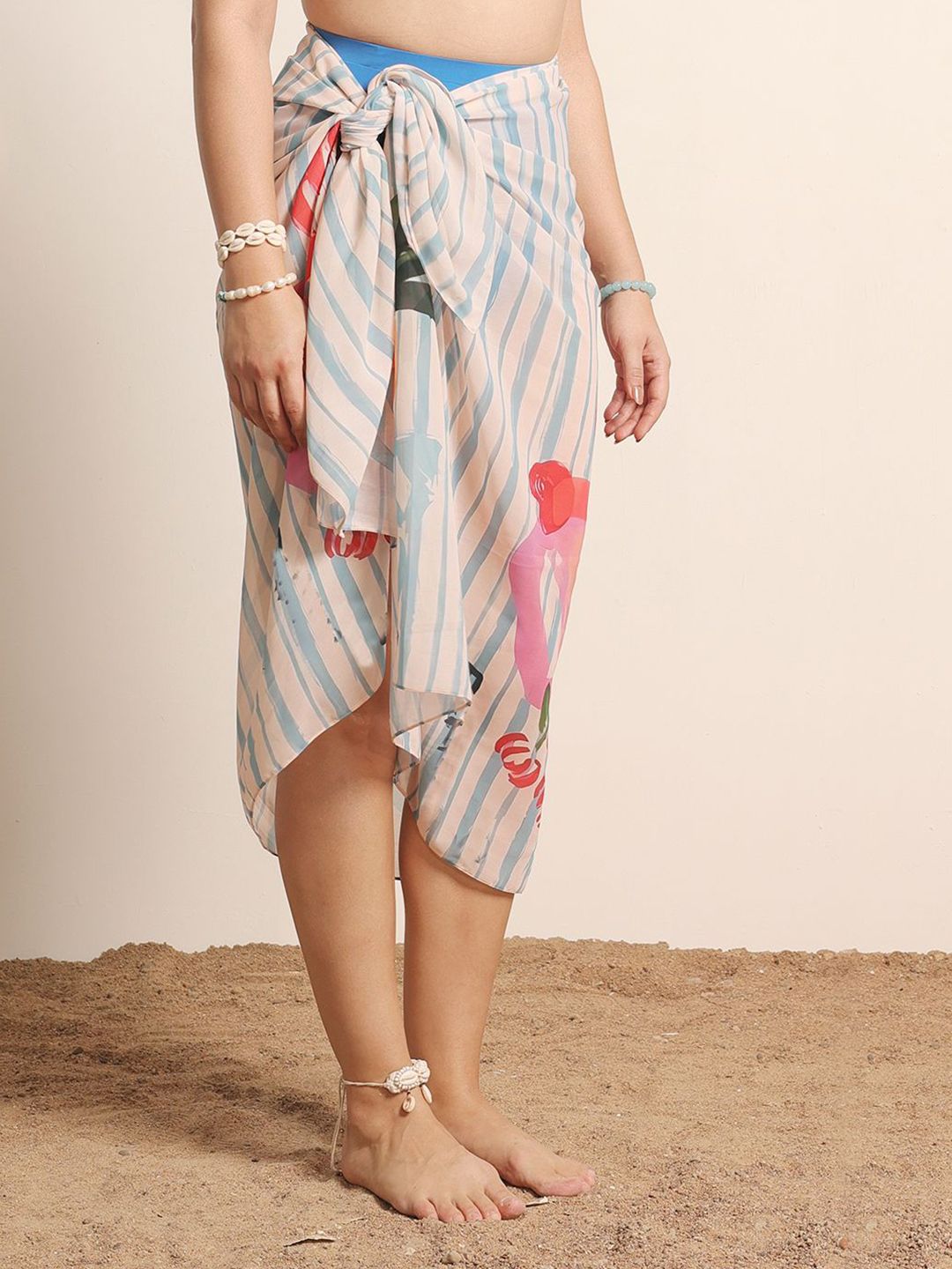 Off white printed swimwear cover-up sarong has tie-up details