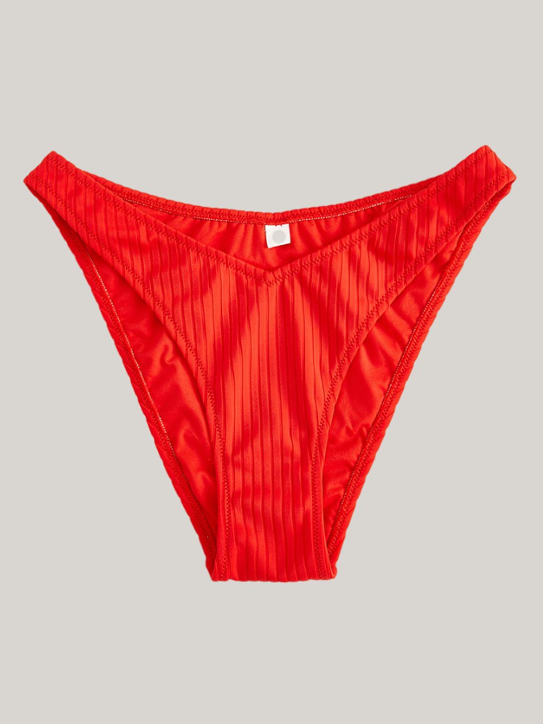 Red solid mid-rise swim briefs, has an elasticated waistband with slip on closure