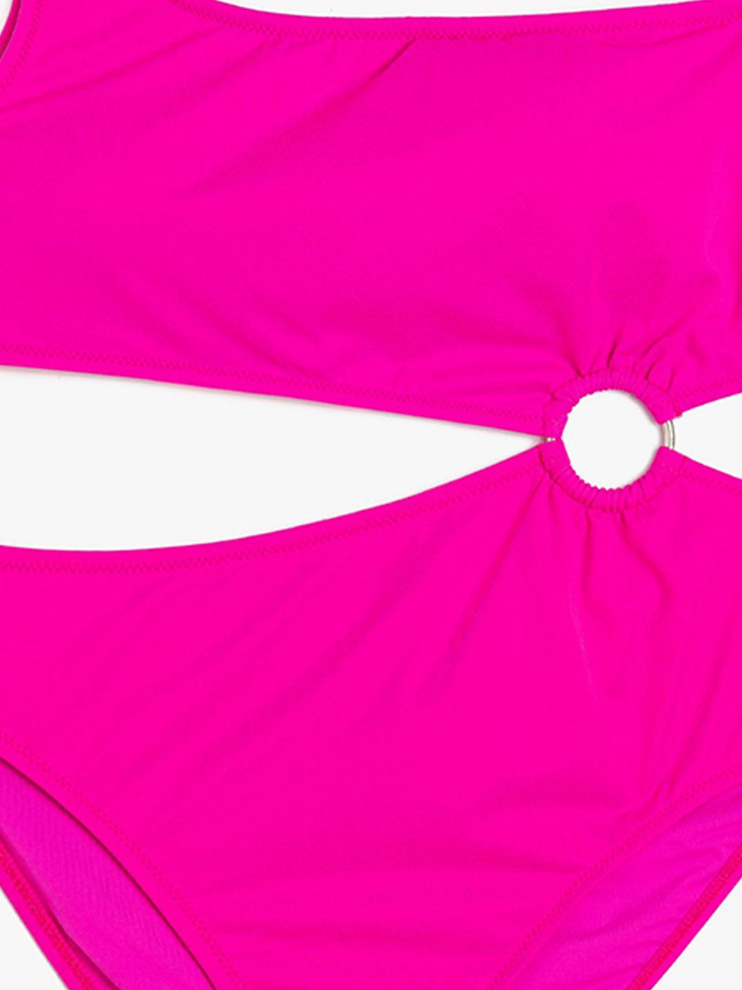 Fuchsia solid non padded bodysuit, has a one shoulder neck and sleeveless