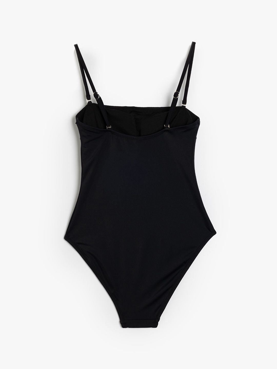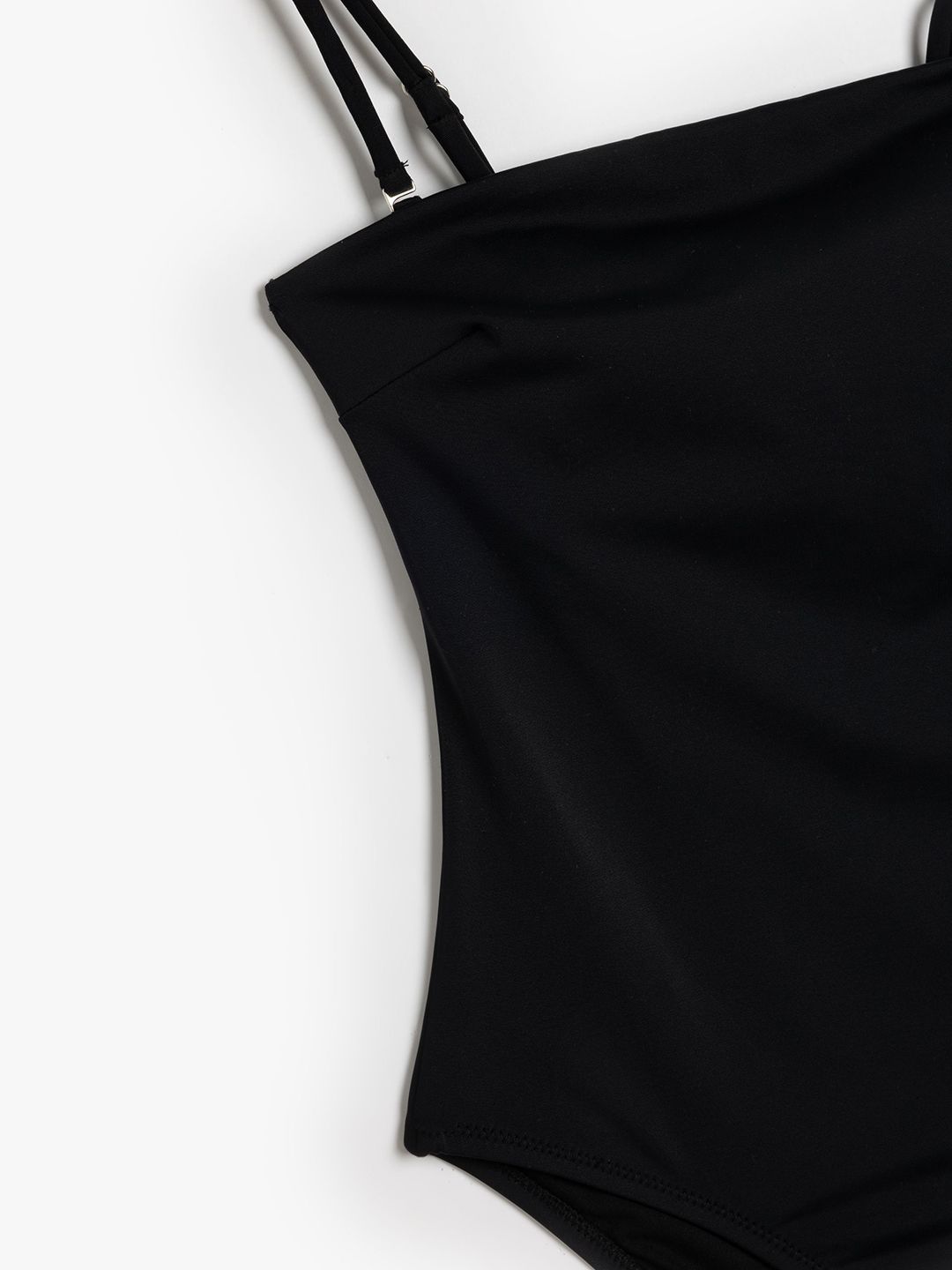 Black solid bodysuit, has a shoulder straps and sleeveless