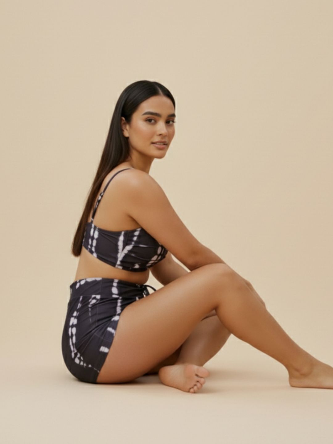 Black & White Printed swim setBlack & White Printed Swim top has a shoulder strap & Sleeveless with slip-on closure at the backBlack & White Printed Swim shorts with slip on closure