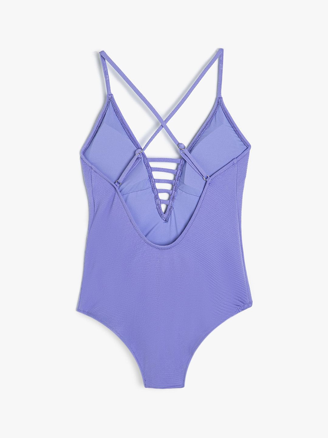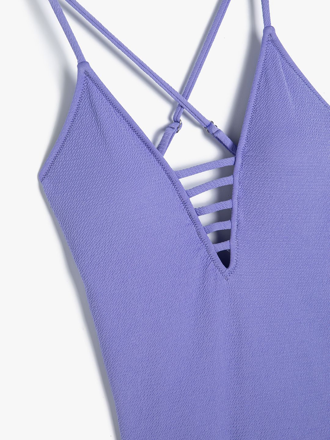 Purple solid bodysuit has a V neck and sleeveless