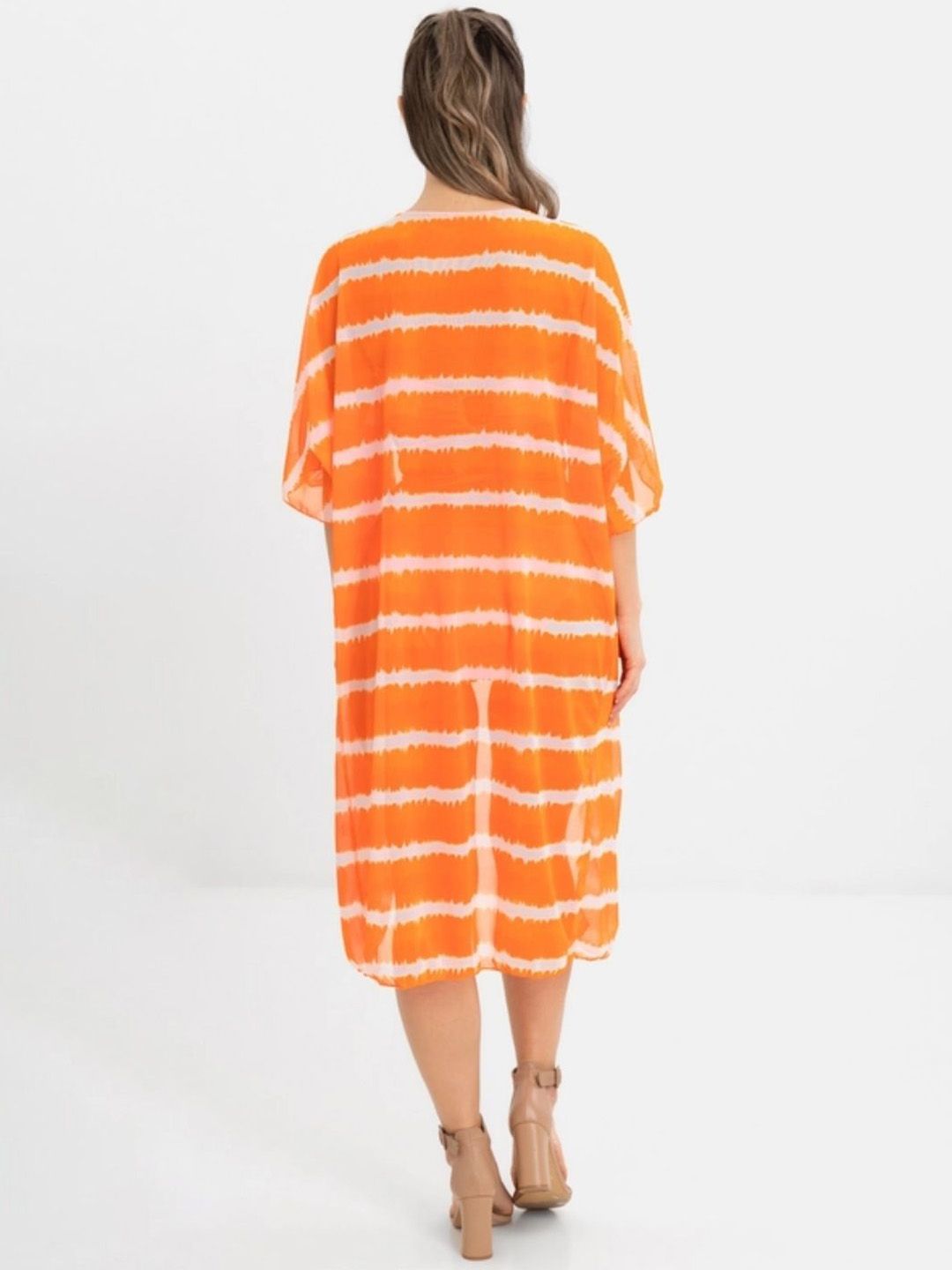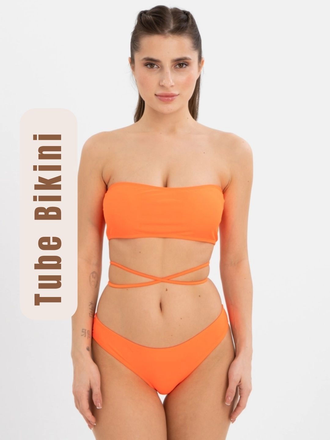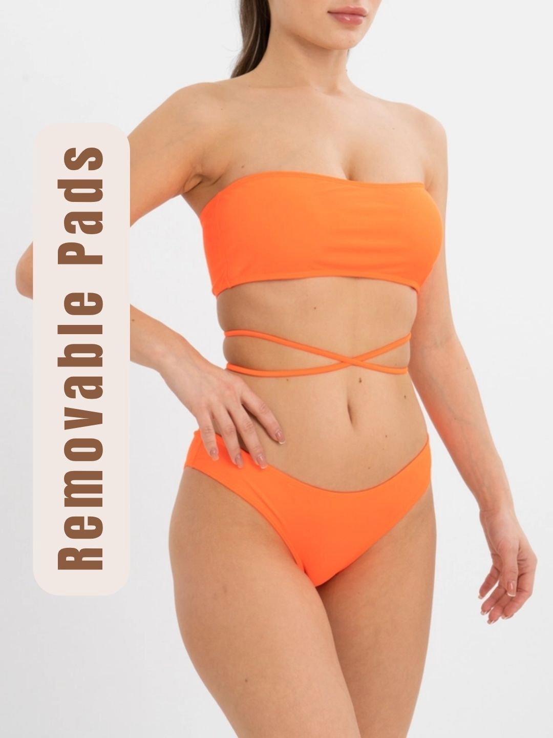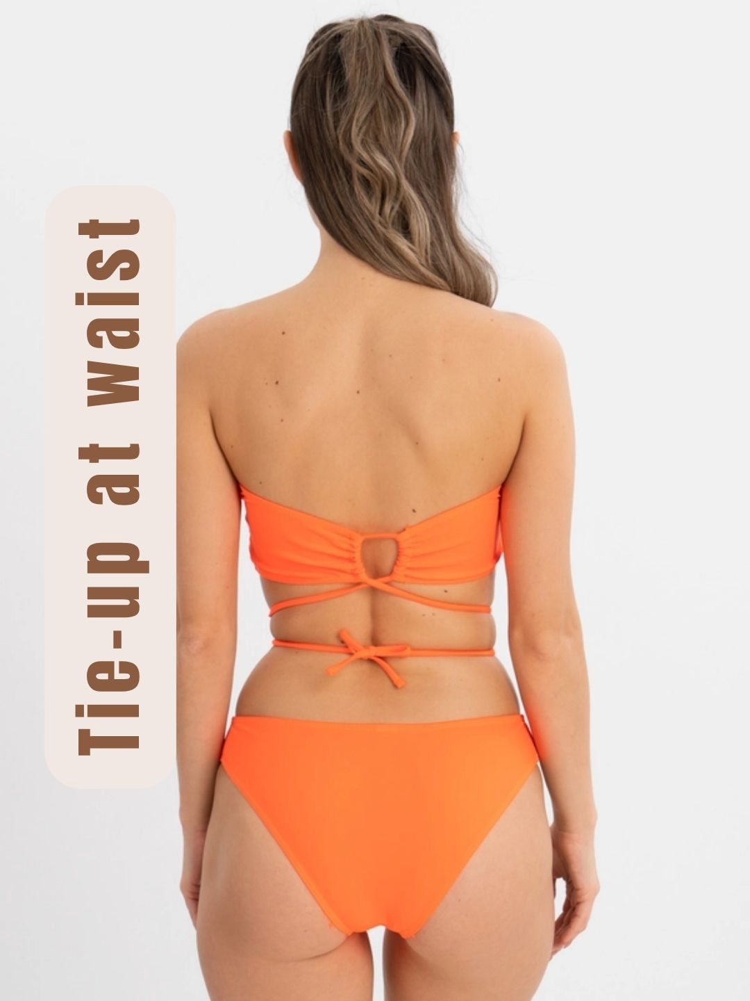 This swimwear cover-up set consists of a top, breifs and shrugOrange-colour solid top, has a strapless neck and sleeveless, secured with tie up closureOrange-colour solid briefs, has an elasticated waistband with slip-on closureComes with orange-colored printed shrug