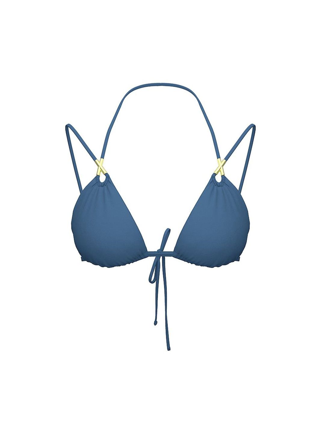 Blue solid swim top, has a halter neck and Keyhole cut-out details with adjustable back-tie closure