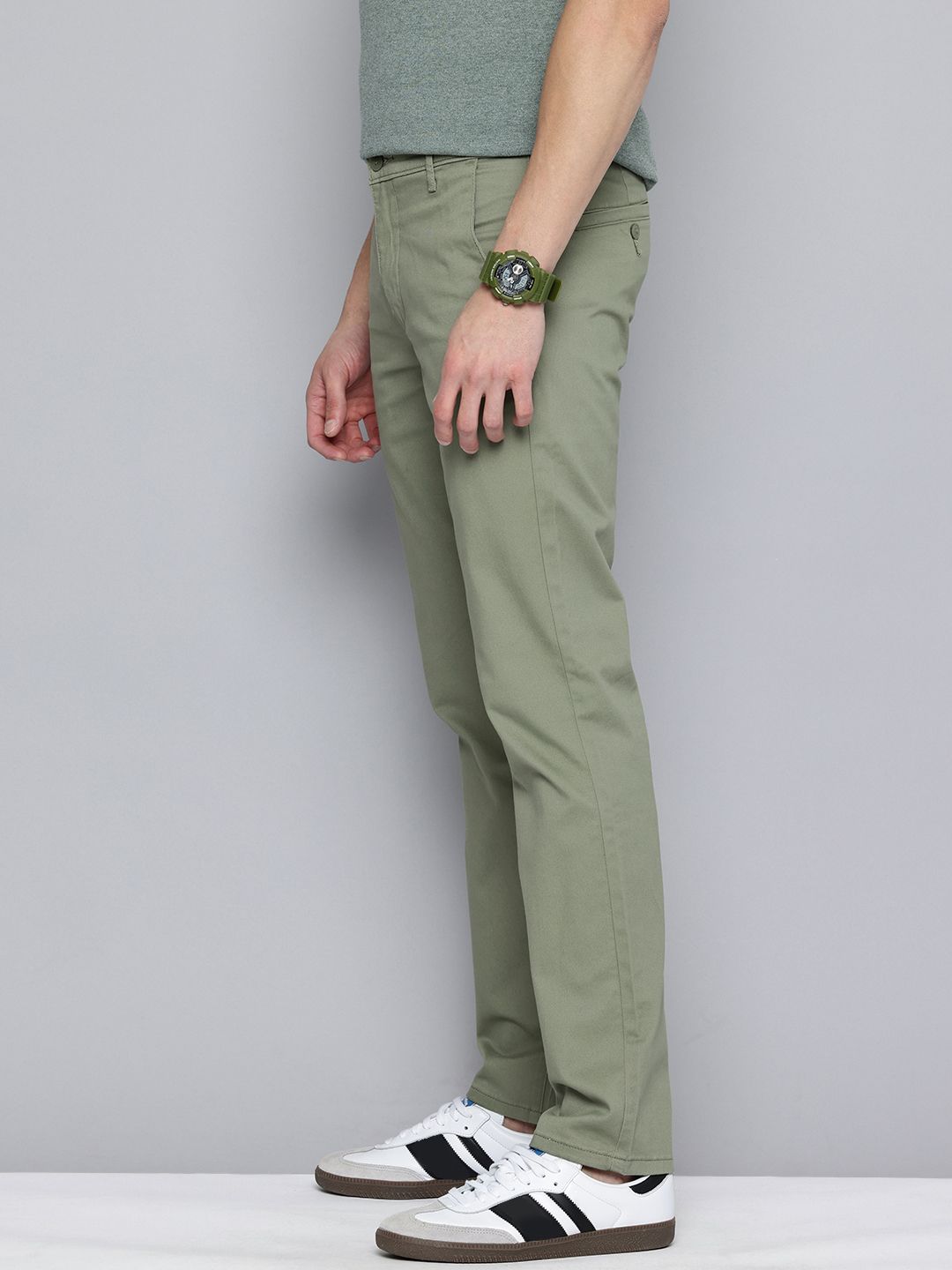With a modern cut that works for any occasion, these Levi's green trousers are a great addition to any man's wardrobe. Crisp and classic, these cotton trousers are an update on a classic menswear staple. It features a mid-rise waist and a slim-fit, while the pocket design provides ample room for everything from wallets and phones to keys and more.1. Dress them up with a button-down shirt or keep it casual with a t-shirt.2. The green color that complements your outfit.