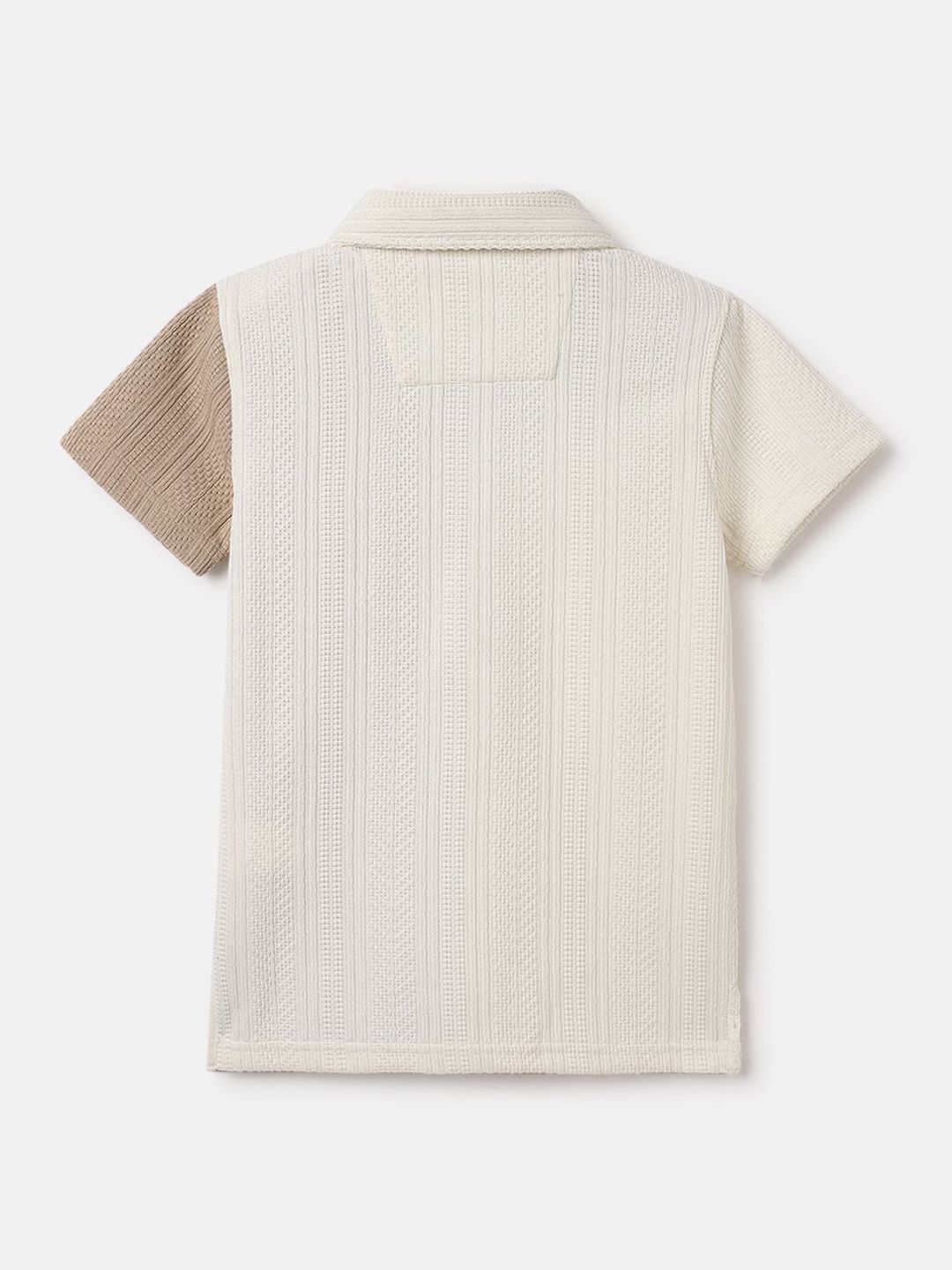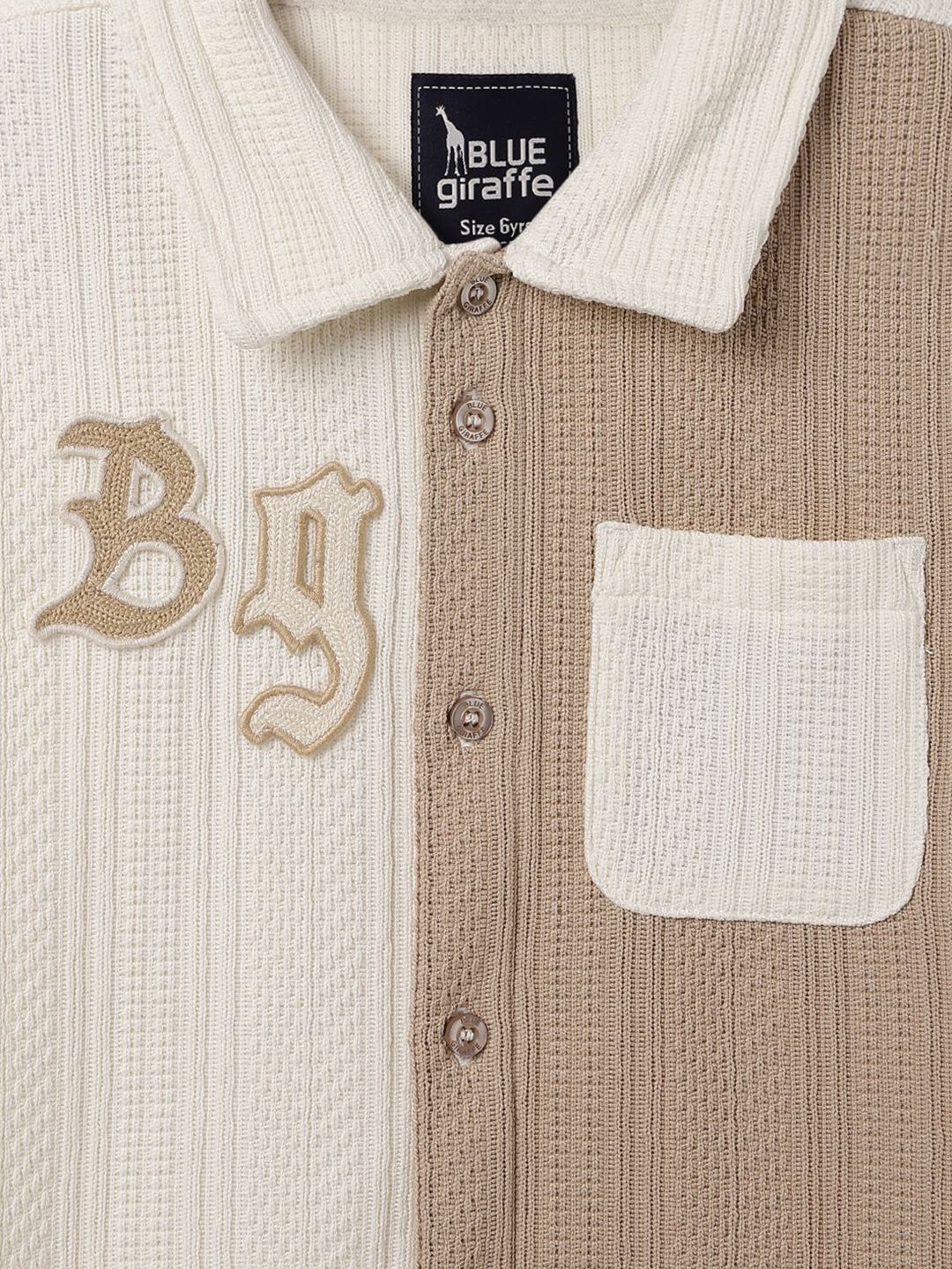 This boys short sleeve shirt is perfect for everyday wear. It features a stylish colorblocked design with a cool bg badge. The textured pattern adds a touch of personality while the spread collar and button closure provide a classic look. Made from comfortable and stretchable polyester fabric this shirt offers a regular fit for all-day comfort.