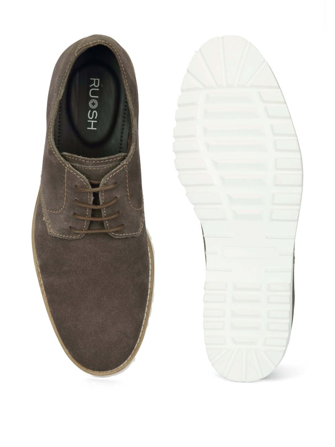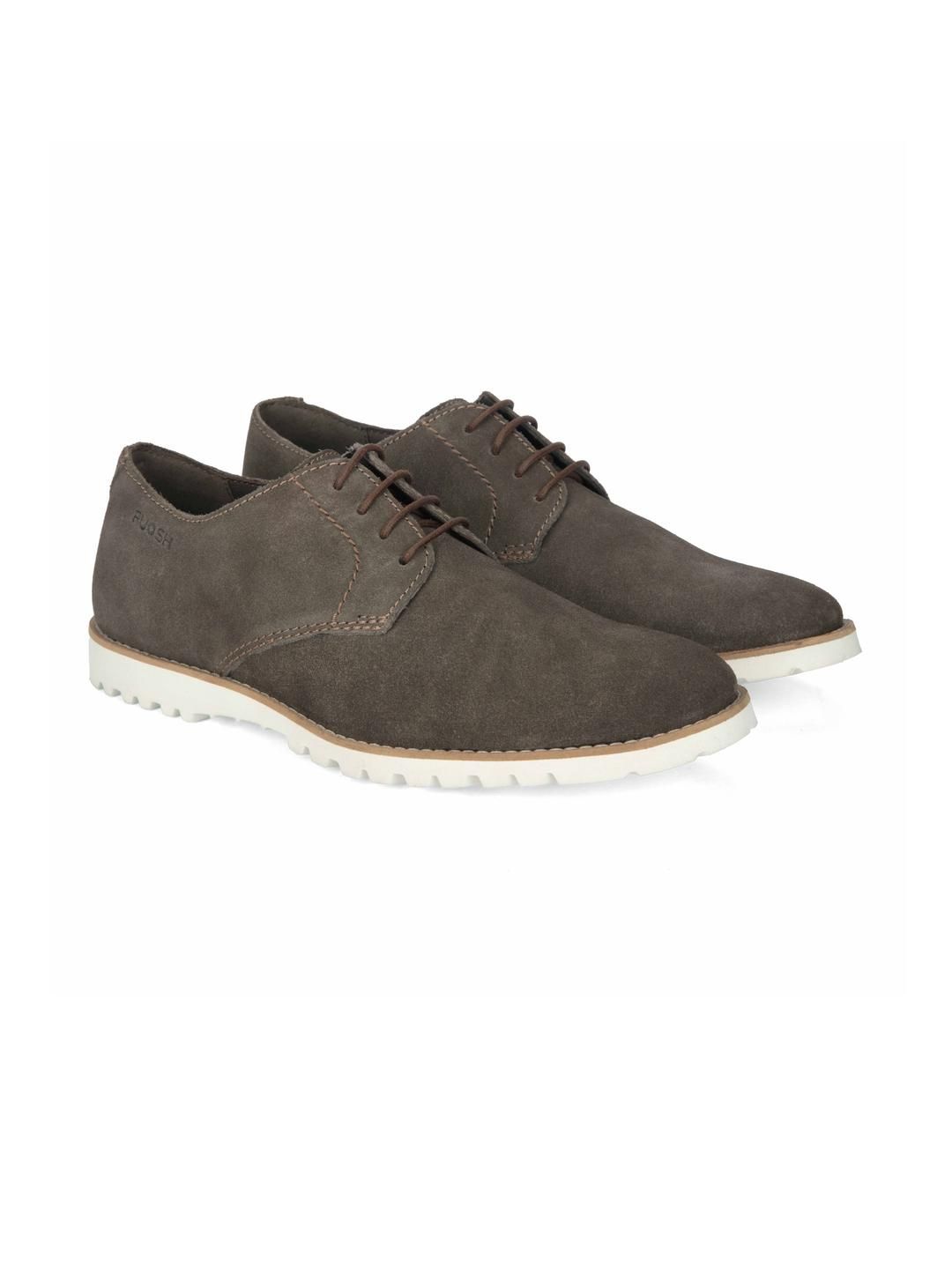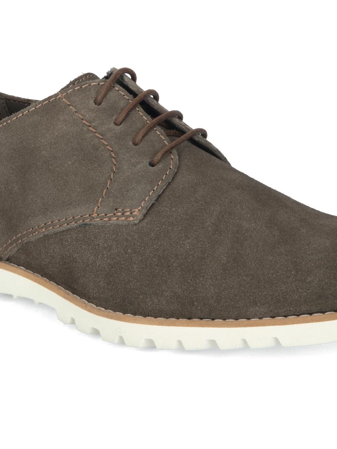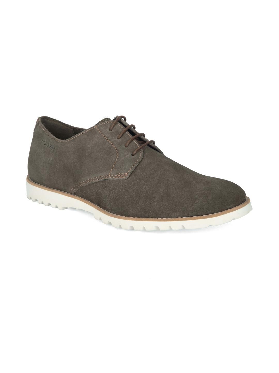 Add a touch of earthy uniqueness to your footwear collection with these greenish brown suede semi-boots. The understated tone paired with a fresh white sole makes for a striking yet versatile addition to casual ensembles.