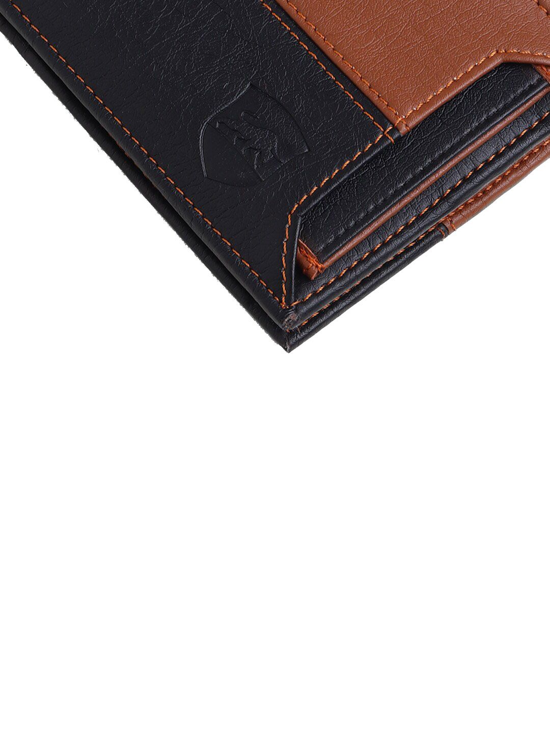 This accessory gift set consists of a wallet, and beltTan brown & Black solid two-fold wallet, 2 main compartments, has a non-detachable flap, card holders, 1 ID card holder, 2 slip pockets, has a flap coin pocketBlack solid belt, secured with a tang claspComes in a signature SAMTROH gift box