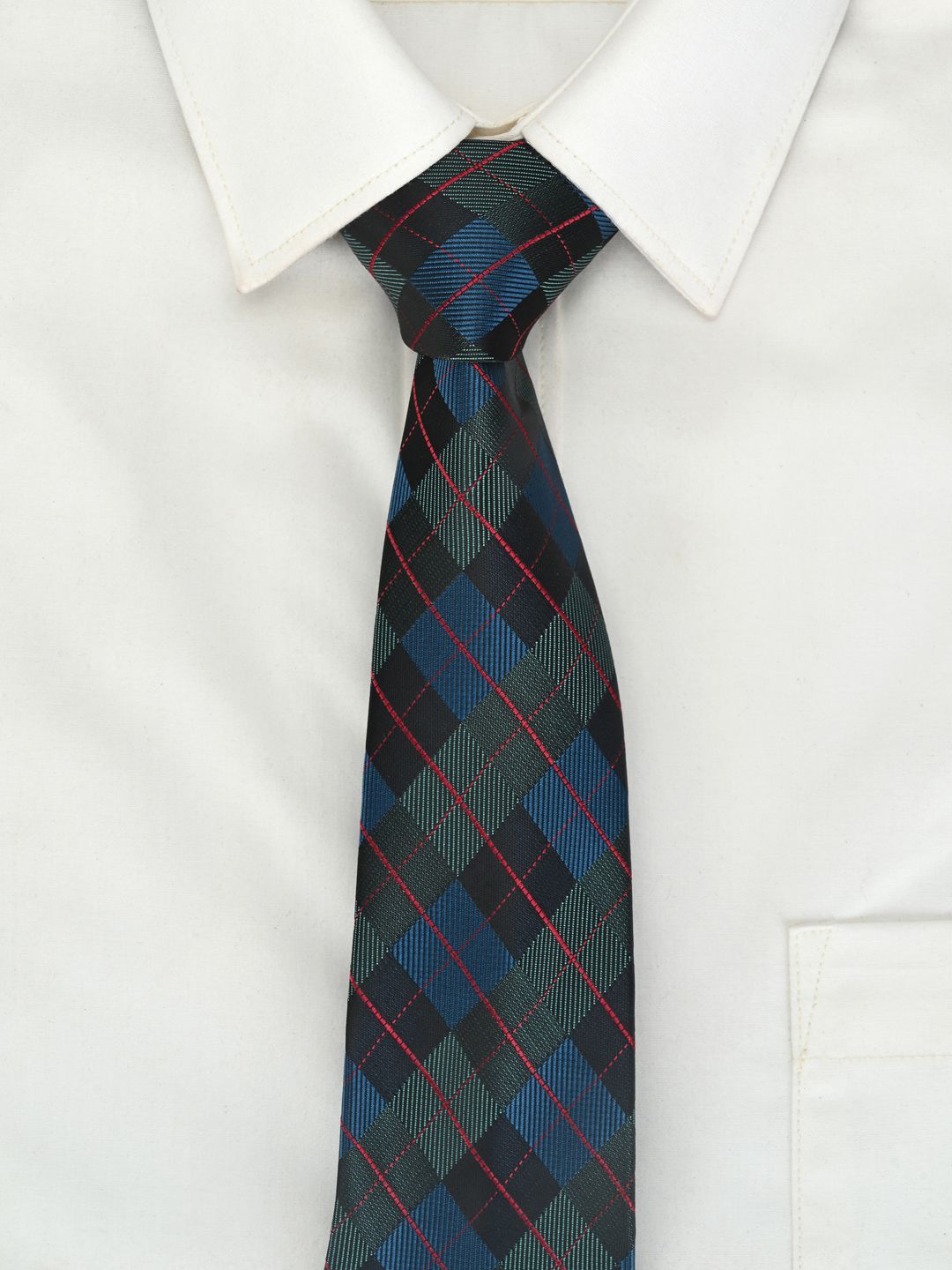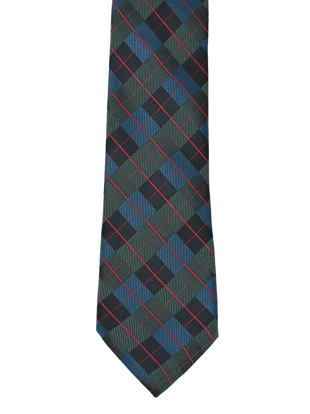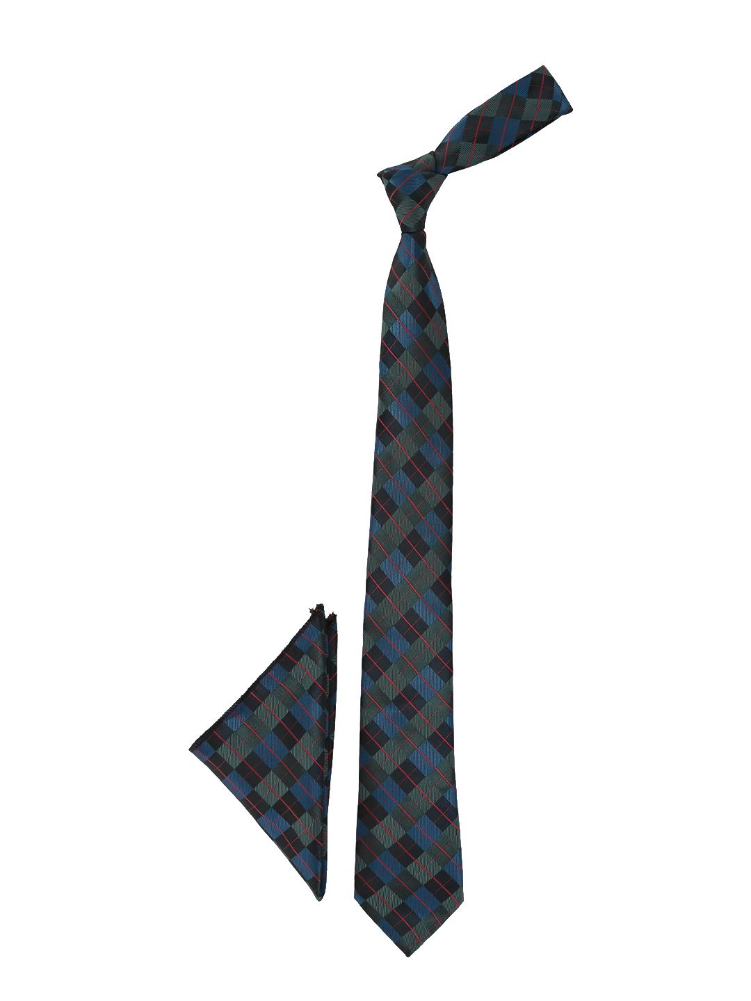 This accessory gift set consists of a tie and a pocket square Green, teal blue and red checked tie Green, teal blue and red checked pocket square Comes in a signature Calvadoss case
