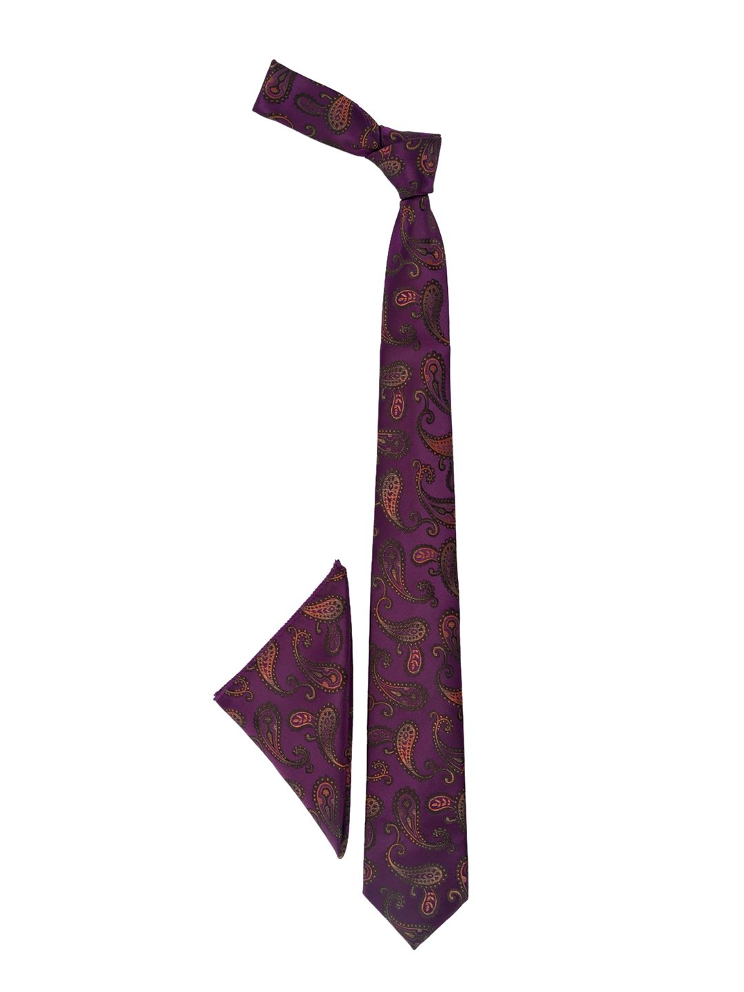 This accessory gift set consists of a tie and a pocket square Purple and orange paisley printed tie Purple and orange paisley printed pocket square Comes in a signature Calvadoss case