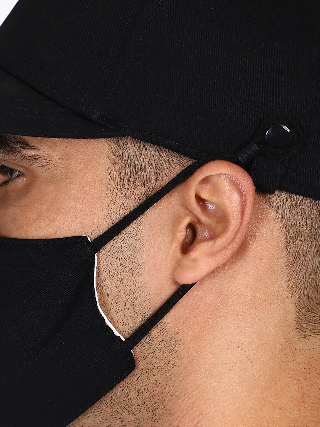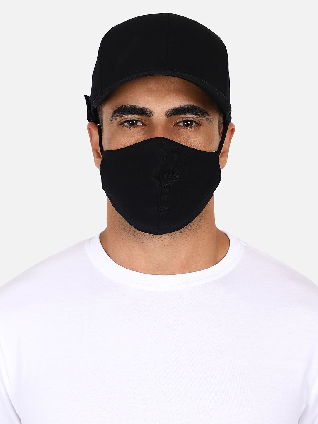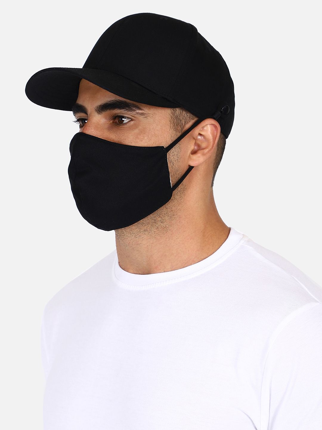 Black solid cap, has a visorComes with a detachable, dust-resistant, and reusable mask