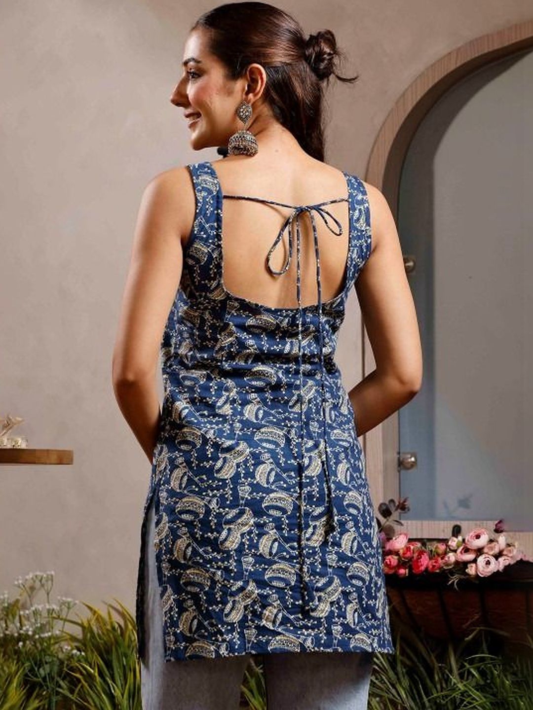 SAICHA Womens Cotton Printed Sleeveless Short Kurti is crafted from soft and breathable cotton fabric that keeps you comfortable all day long. Designed with a stylish printed pattern, this kurti adds a fresh and elegant touch to your everyday wardrobe. The sleeveless design and short length make it perfect for summer wear and easy styling. It offers a relaxed yet flattering fit suitable for daily wear, office use, or casual outings. Pair it with jeans, leggings, or palazzos for a simple and trendy look.