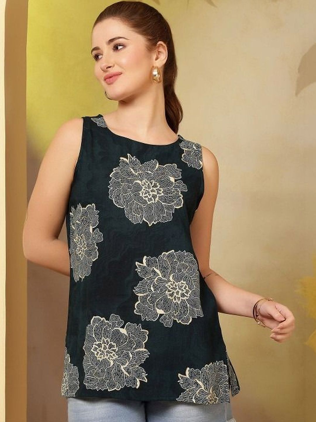 SAICHA Womens Cotton Printed Sleeveless Short Kurti is crafted from soft and breathable cotton fabric that keeps you comfortable all day long. Designed with a stylish printed pattern, this kurti adds a fresh and elegant touch to your everyday wardrobe. The sleeveless design and short length make it perfect for summer wear and easy styling. It offers a relaxed yet flattering fit suitable for daily wear, office use, or casual outings. Pair it with jeans, leggings, or palazzos for a simple and trendy look.