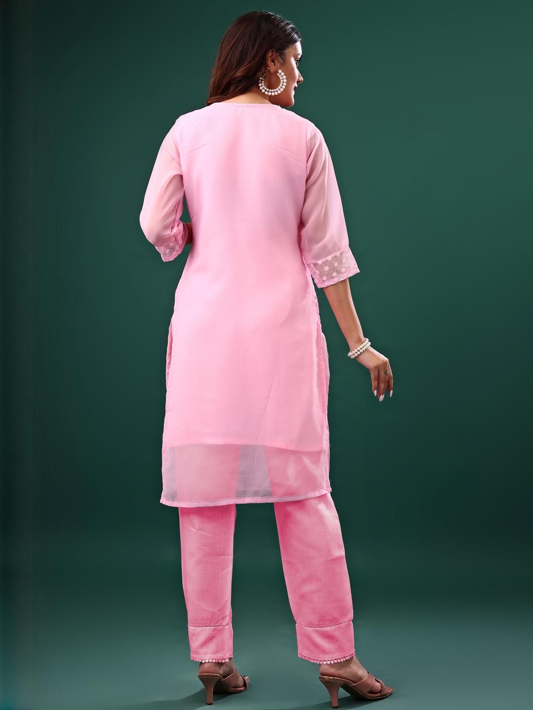 Hand wash separately in cold water using mild detergent. Avoid bleach and harsh chemicals. Do not wring. Dry in shade to preserve color and embroidery. Iron on low heat inside out. Handle with care to retain fabric and design.