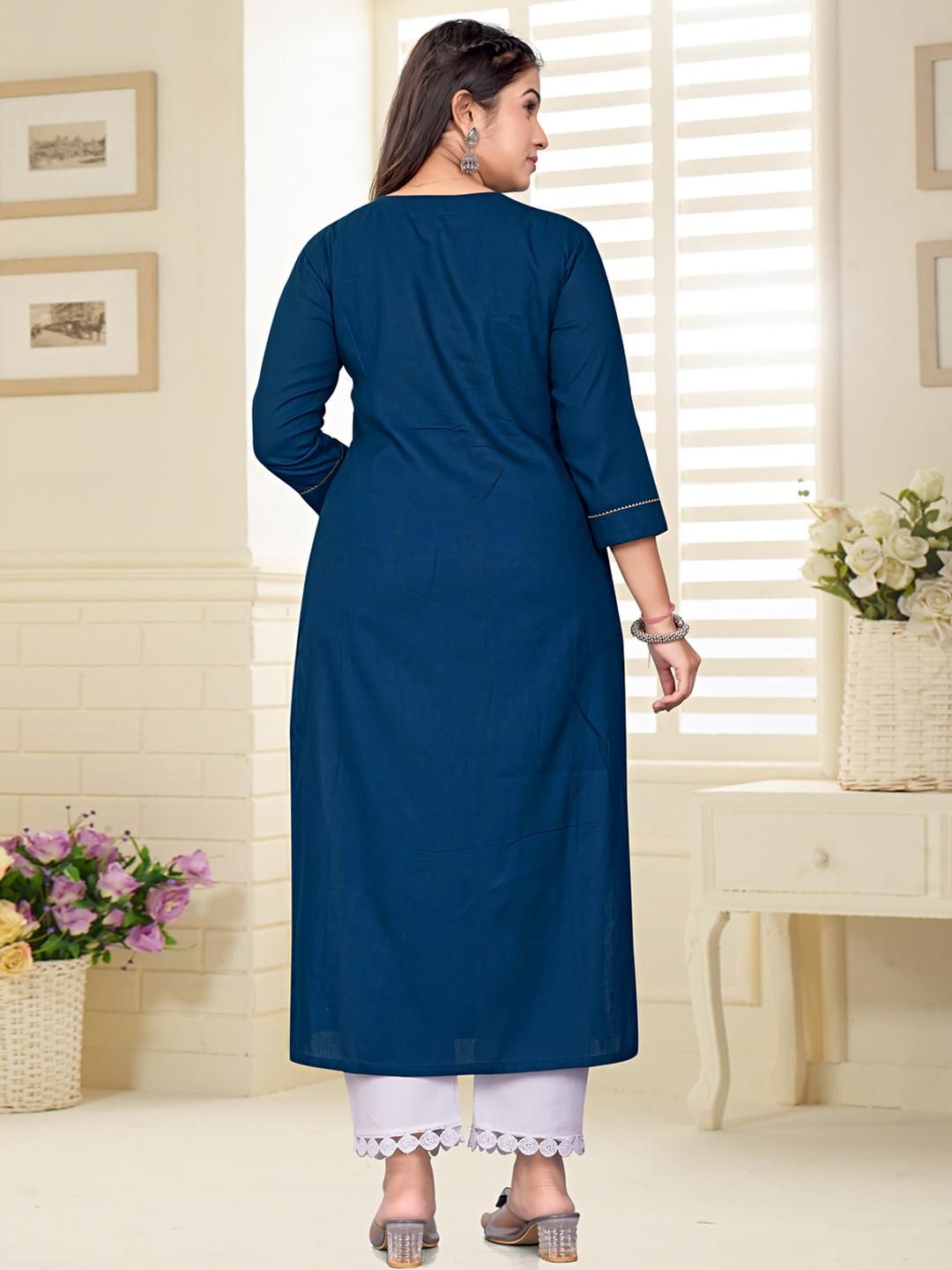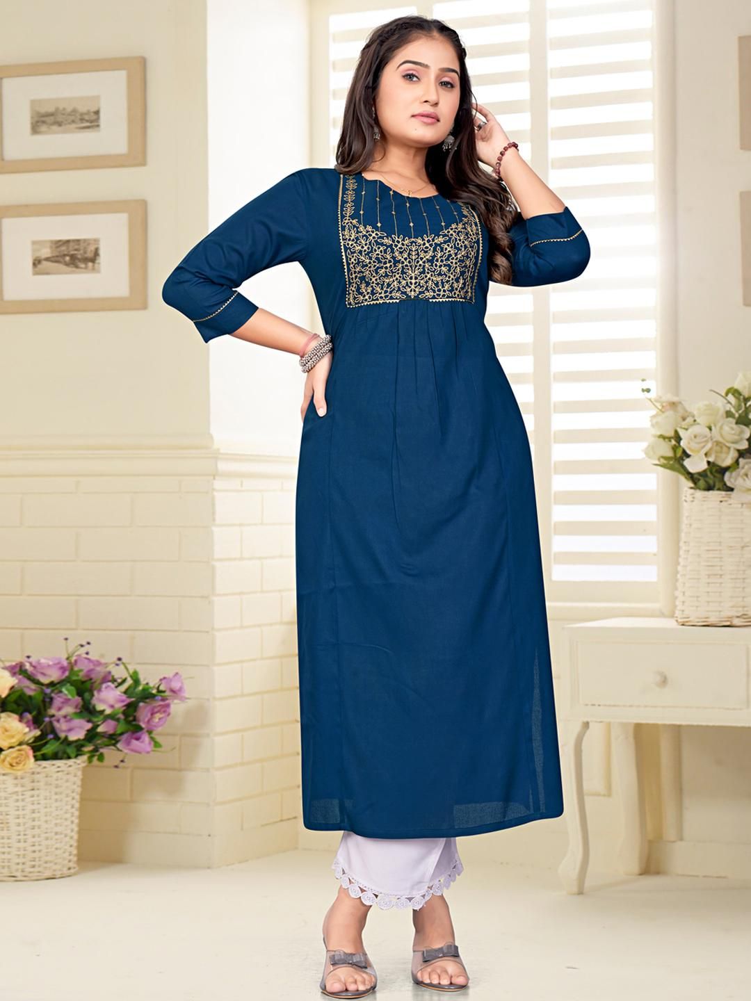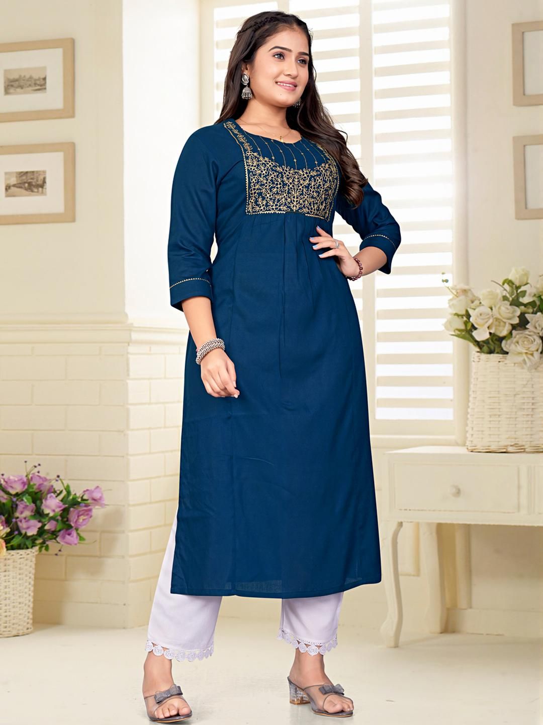 Elevate your ethnic wardrobe with ZAZADIYA IMPEX Embroidered Women Kurtis, a perfect fusion of traditional elegance and contemporary style. Crafted from premium-quality fabric, each kurti features intricate embroidery that adds charm and grace to your look. Designed for comfort and versatility, these kurtis are ideal for festive occasions, office wear, or casual outings. The fine stitching, breathable material, and vibrant color palette reflect skilled craftsmanship and timeless appeal. Pair them with leggings, palazzos, or jeans for a complete look. Whether day or night, these kurtis ensure you stand out with elegance and confidence. A must-have for every modern woman.