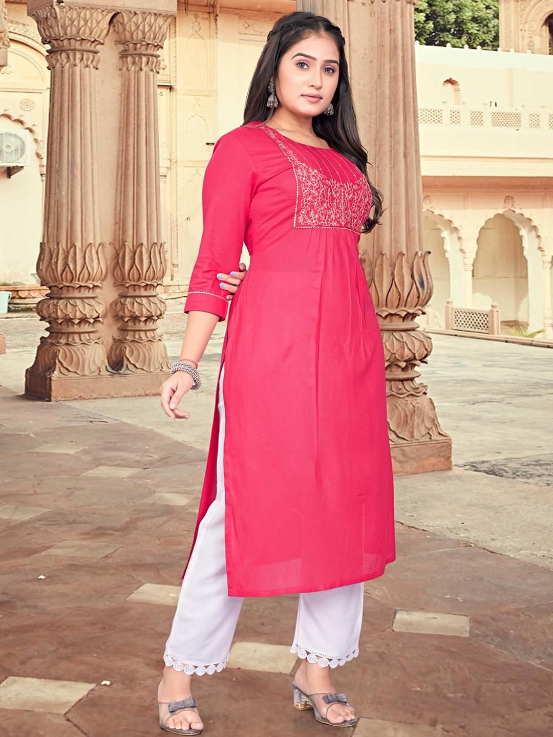 Elevate your ethnic wardrobe with ZAZADIYA IMPEX Embroidered Women Kurtis, a perfect fusion of traditional elegance and contemporary style. Crafted from premium-quality fabric, each kurti features intricate embroidery that adds charm and grace to your look. Designed for comfort and versatility, these kurtis are ideal for festive occasions, office wear, or casual outings. The fine stitching, breathable material, and vibrant color palette reflect skilled craftsmanship and timeless appeal. Pair them with leggings, palazzos, or jeans for a complete look. Whether day or night, these kurtis ensure you stand out with elegance and confidence. A must-have for every modern woman.
