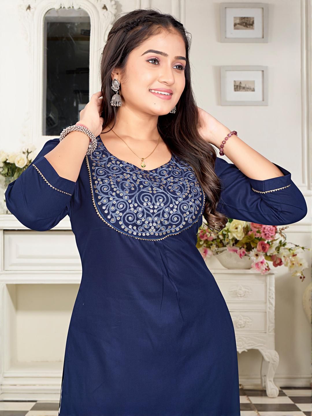 Elevate your ethnic wardrobe with ZAZADIYA IMPEX Embroidered Women Kurtis, a perfect fusion of traditional elegance and contemporary style. Crafted from premium-quality fabric, each kurti features intricate embroidery that adds charm and grace to your look. Designed for comfort and versatility, these kurtis are ideal for festive occasions, office wear, or casual outings. The fine stitching, breathable material, and vibrant color palette reflect skilled craftsmanship and timeless appeal. Pair them with leggings, palazzos, or jeans for a complete look. Whether day or night, these kurtis ensure you stand out with elegance and confidence. A must-have for every modern woman.