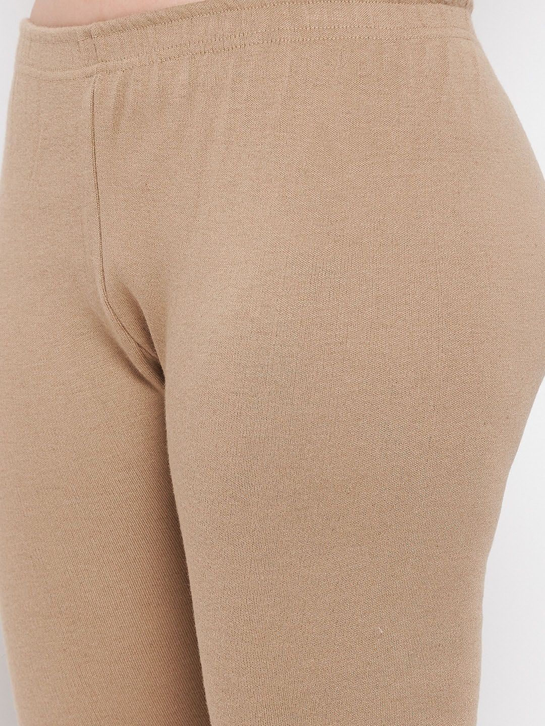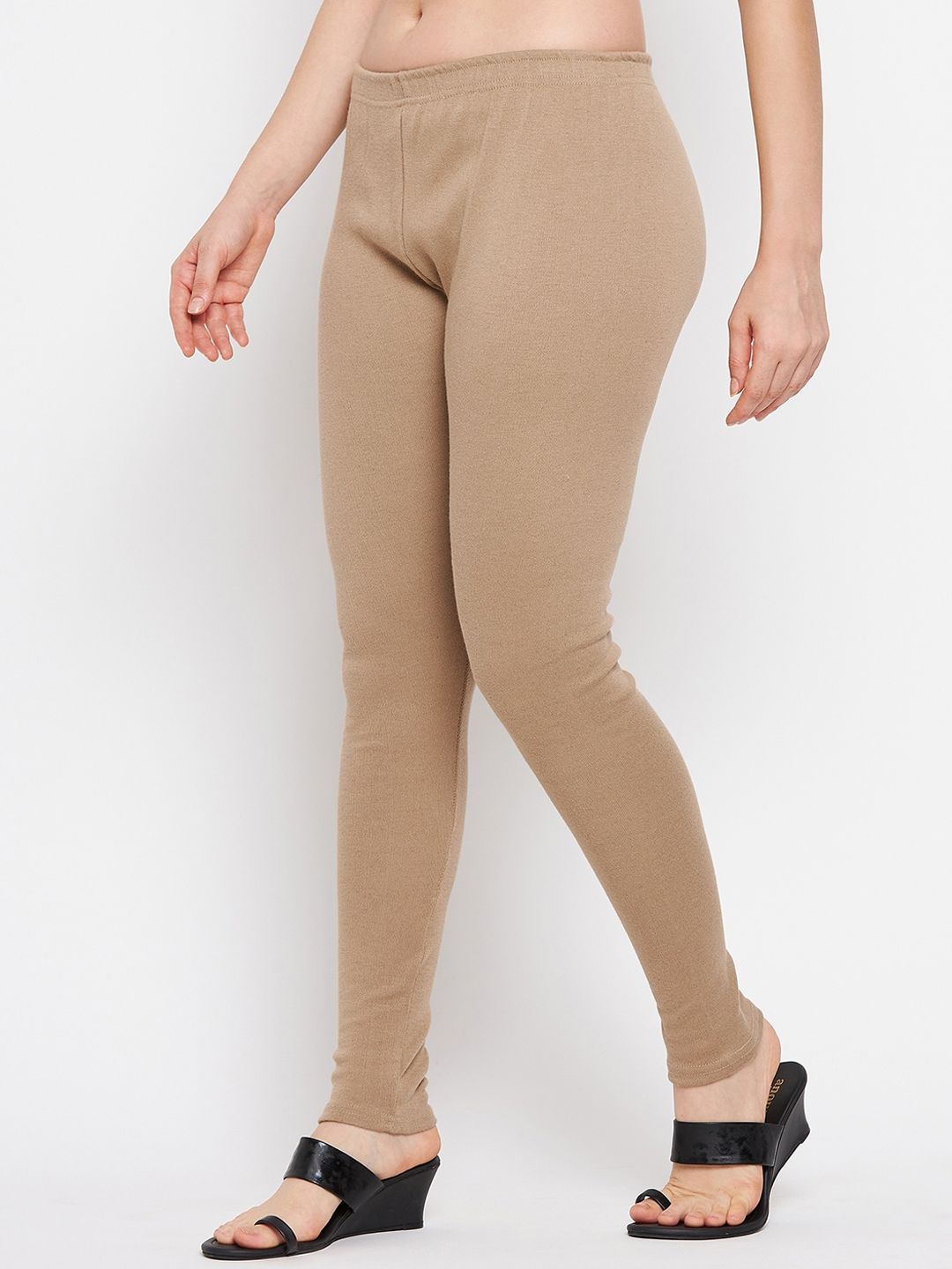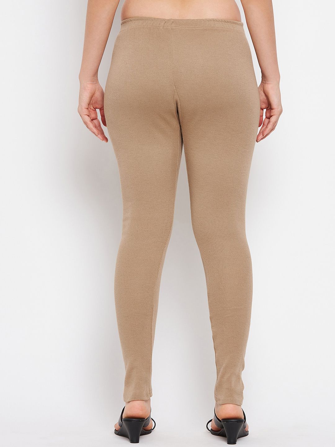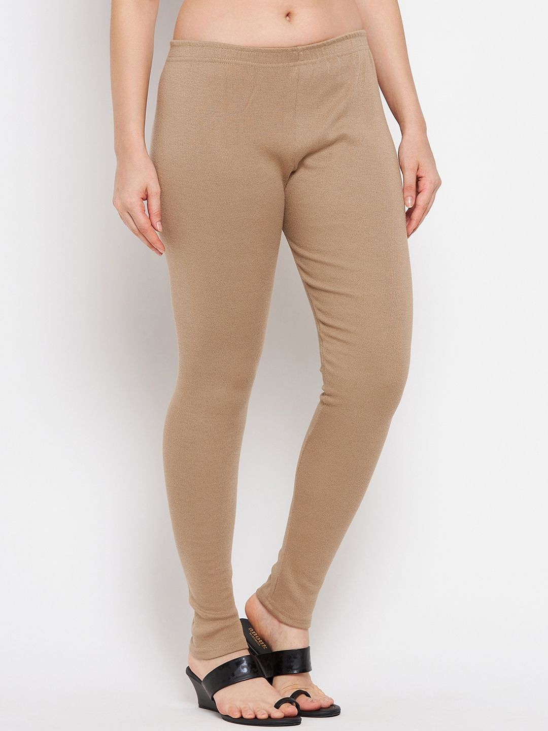 Beige solid regular-fit ankle-length leggings, has an elasticated waistband and slip-on closure