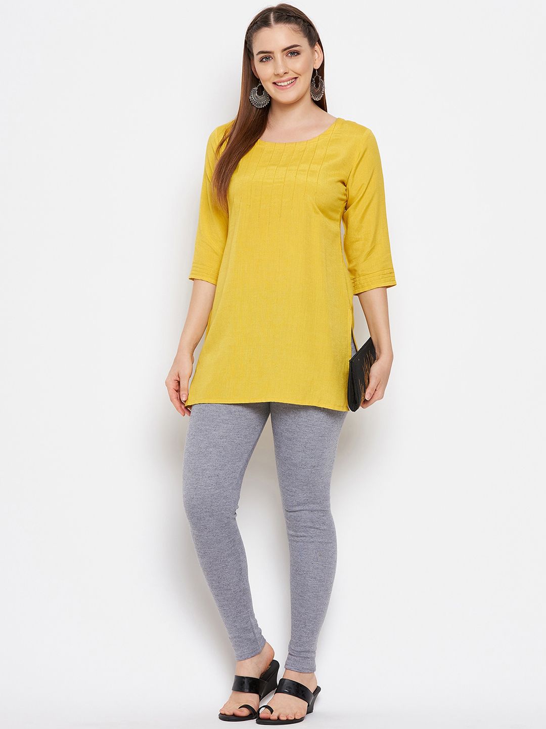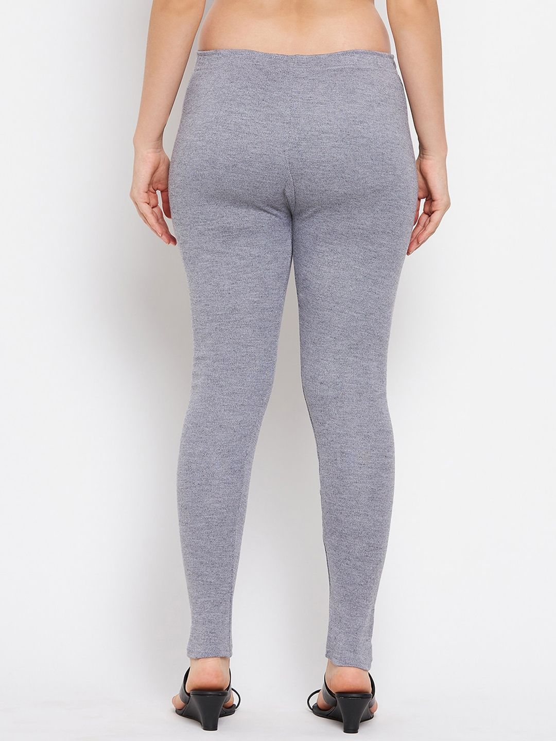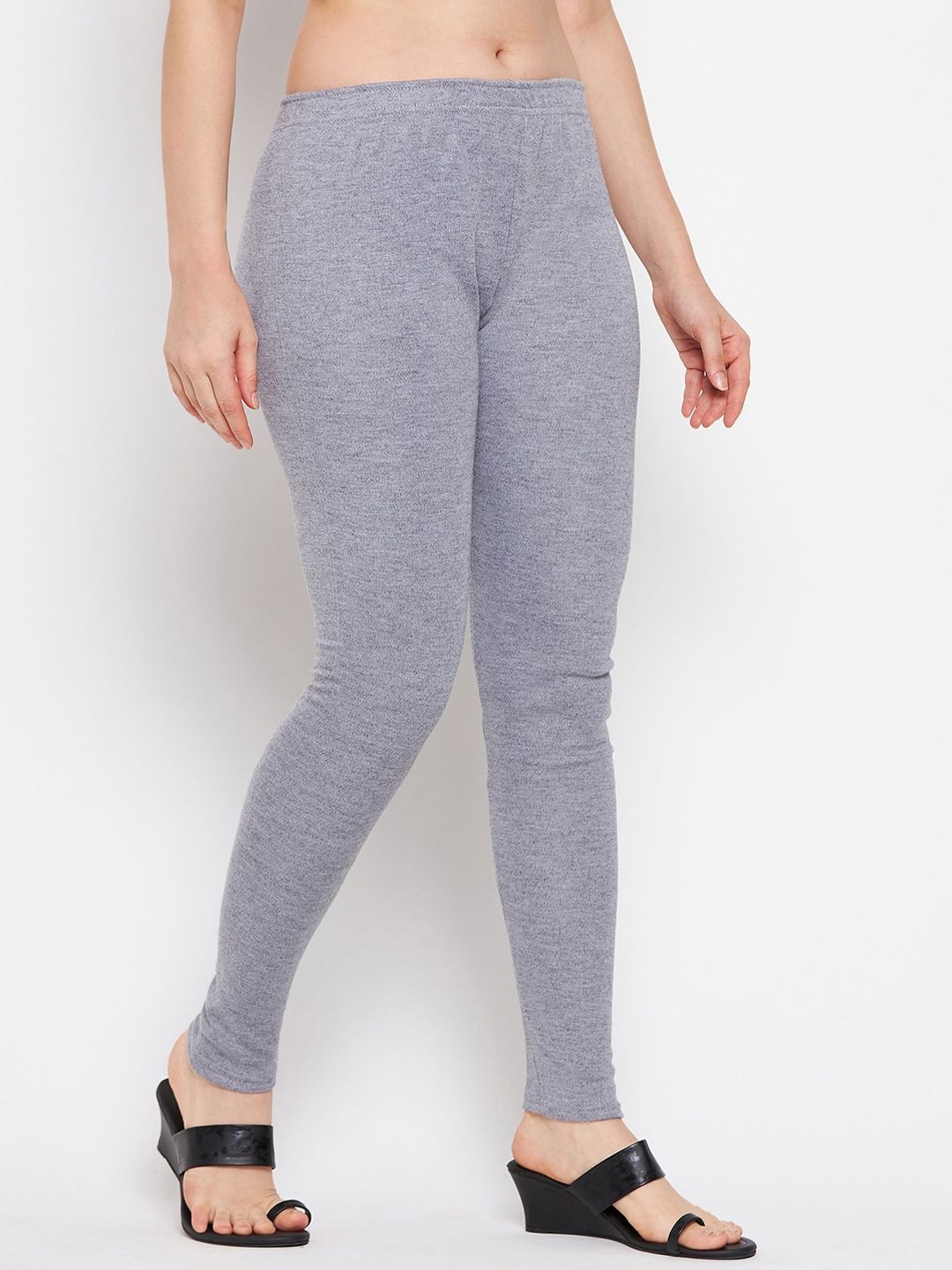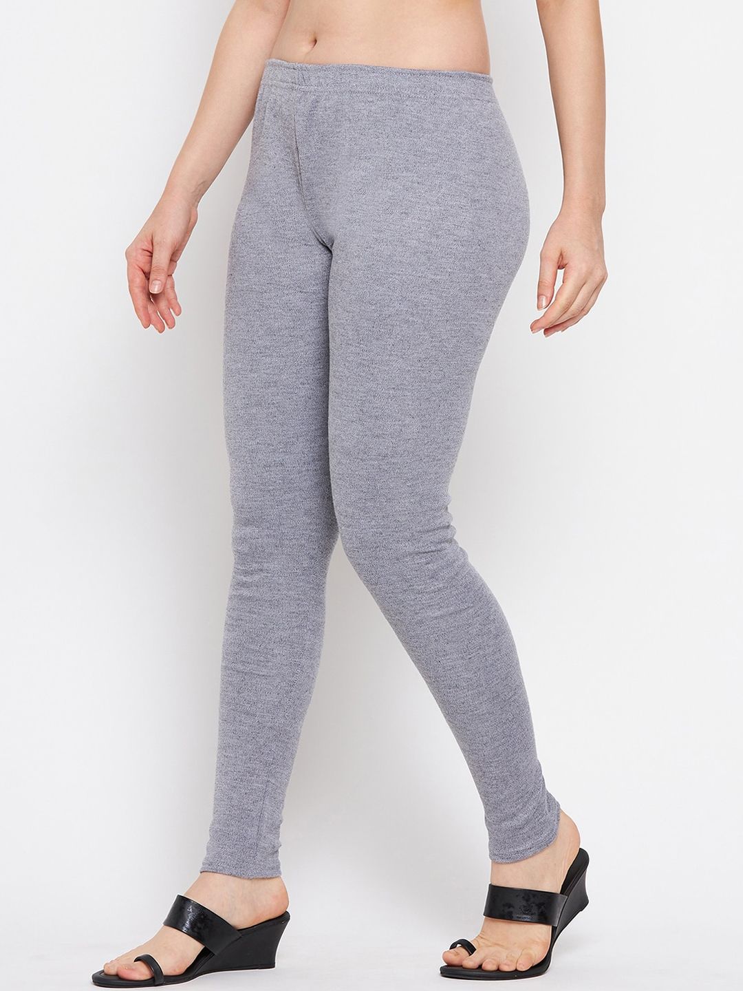 Grey solid ankle-length leggings, has an elasticated waistband and slip-on closure
